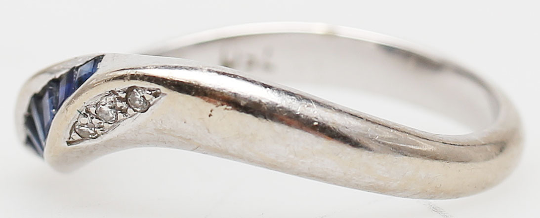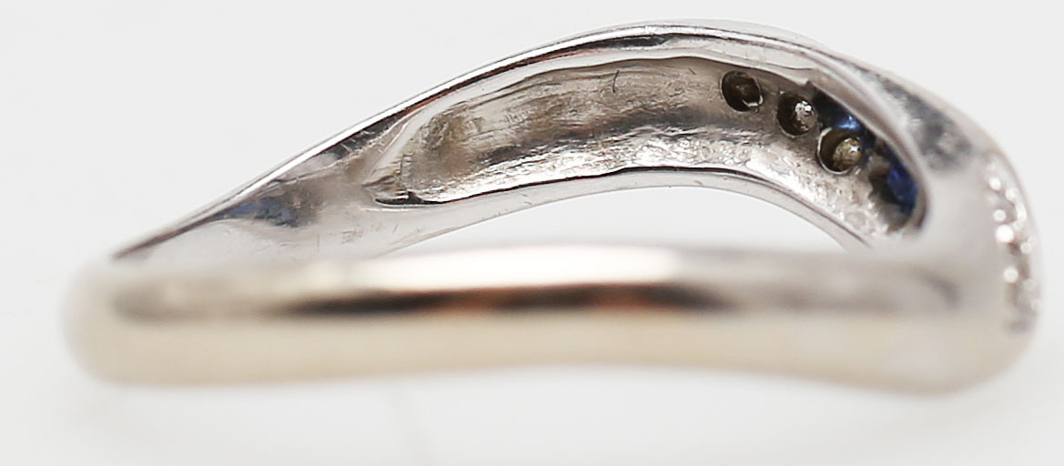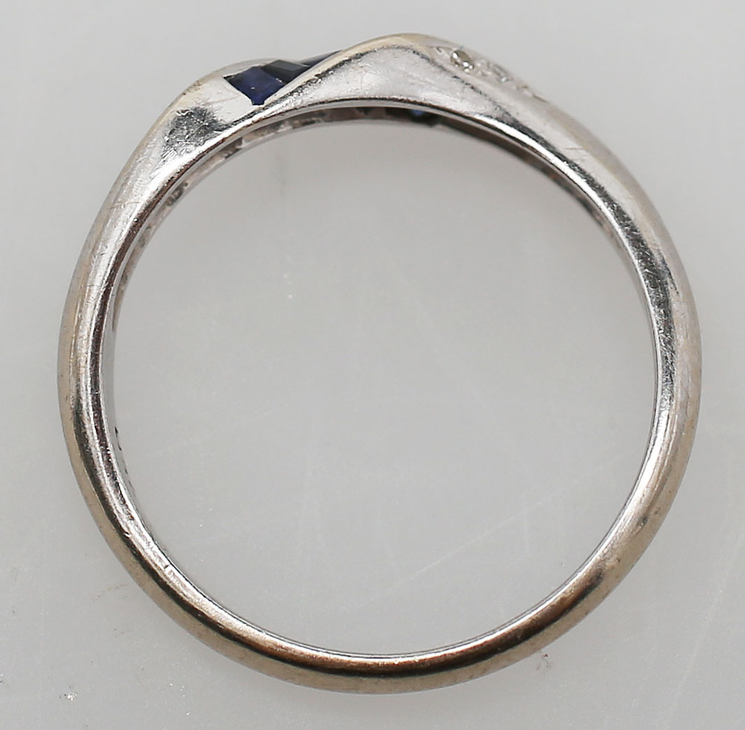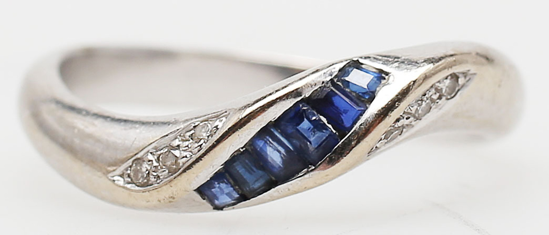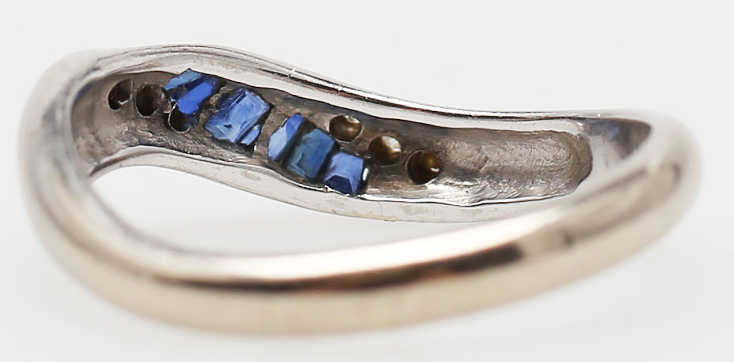 85665. RING MED DIAMANTER OG BLÅ STEN, hvidguld, 18 K.