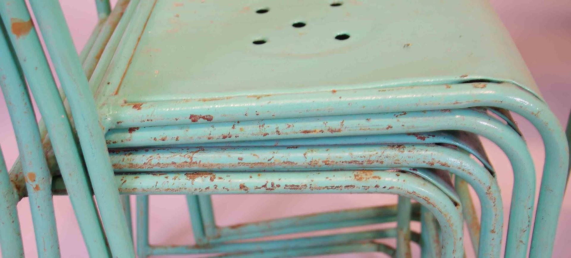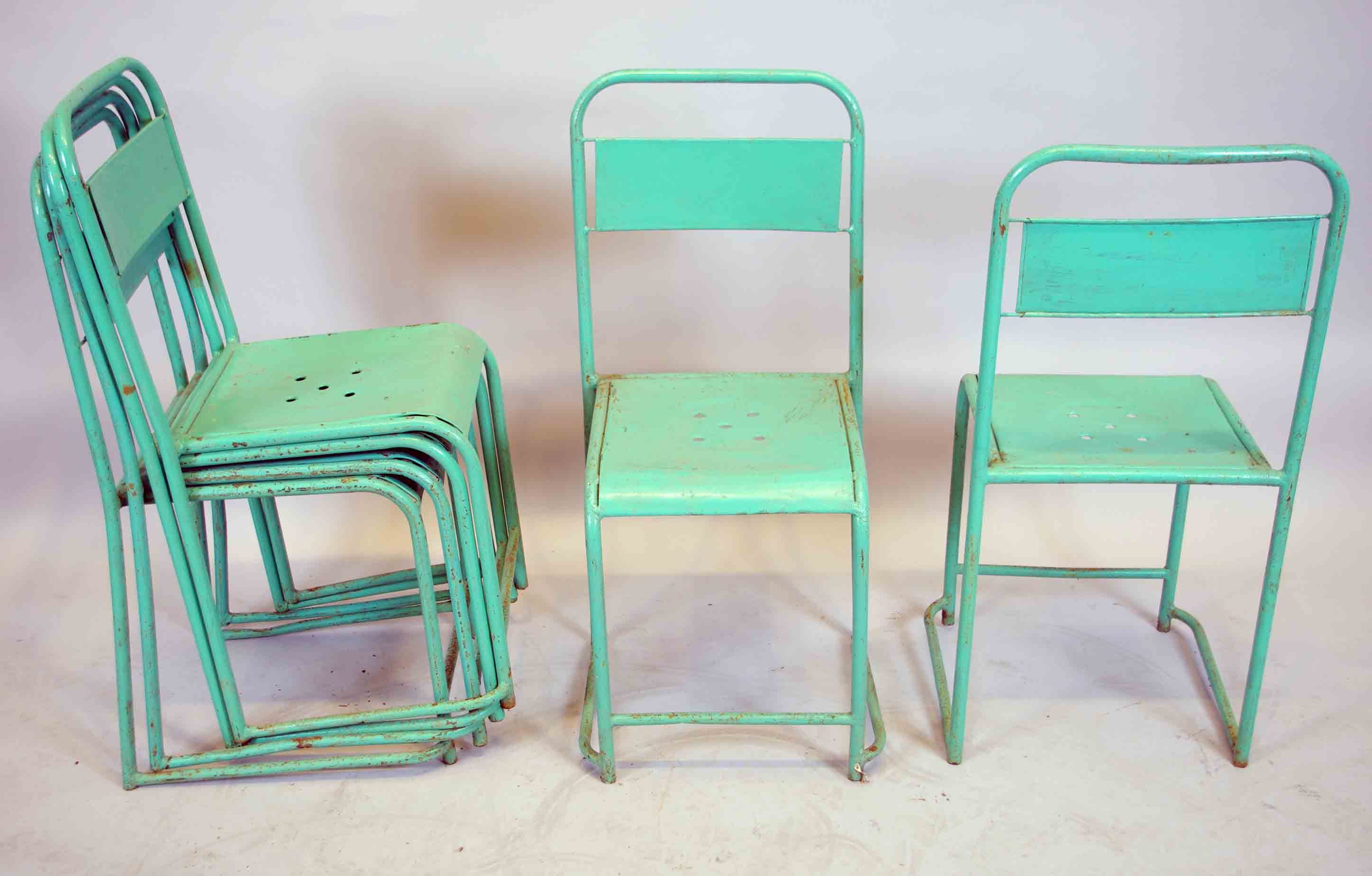 85762. STOLE, 6 stk., grønmalet plade/metal.