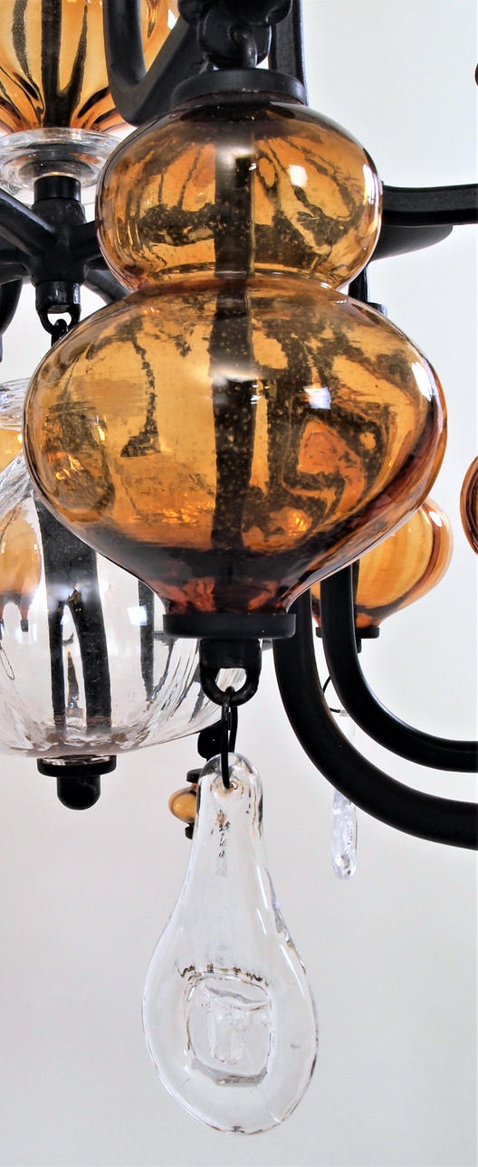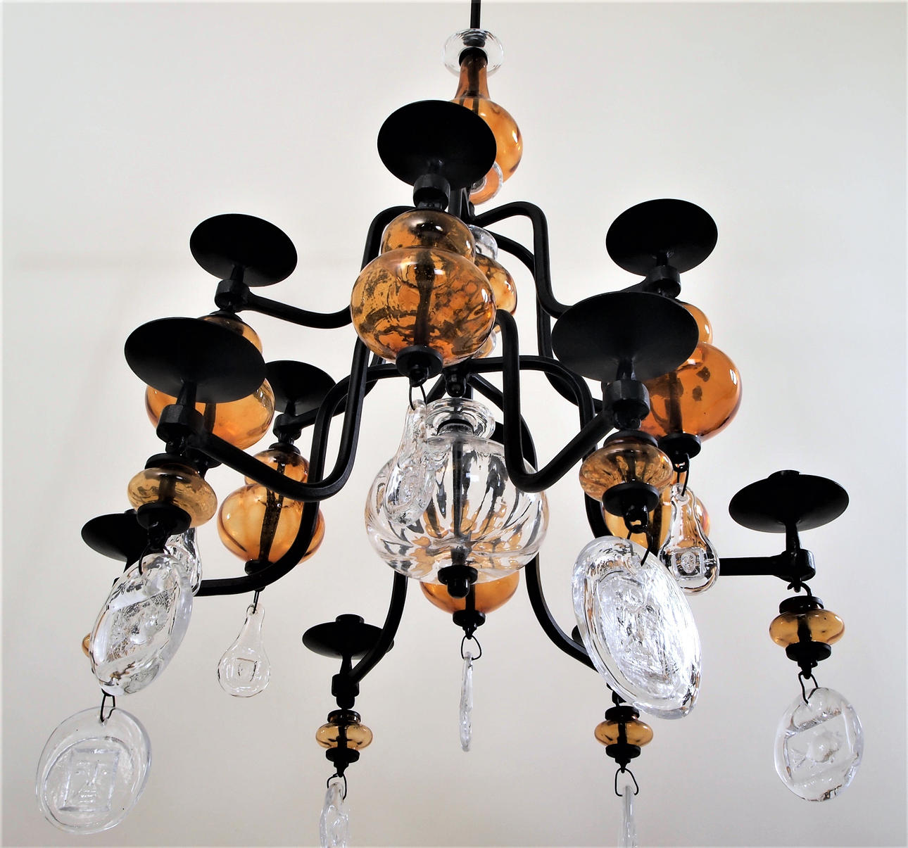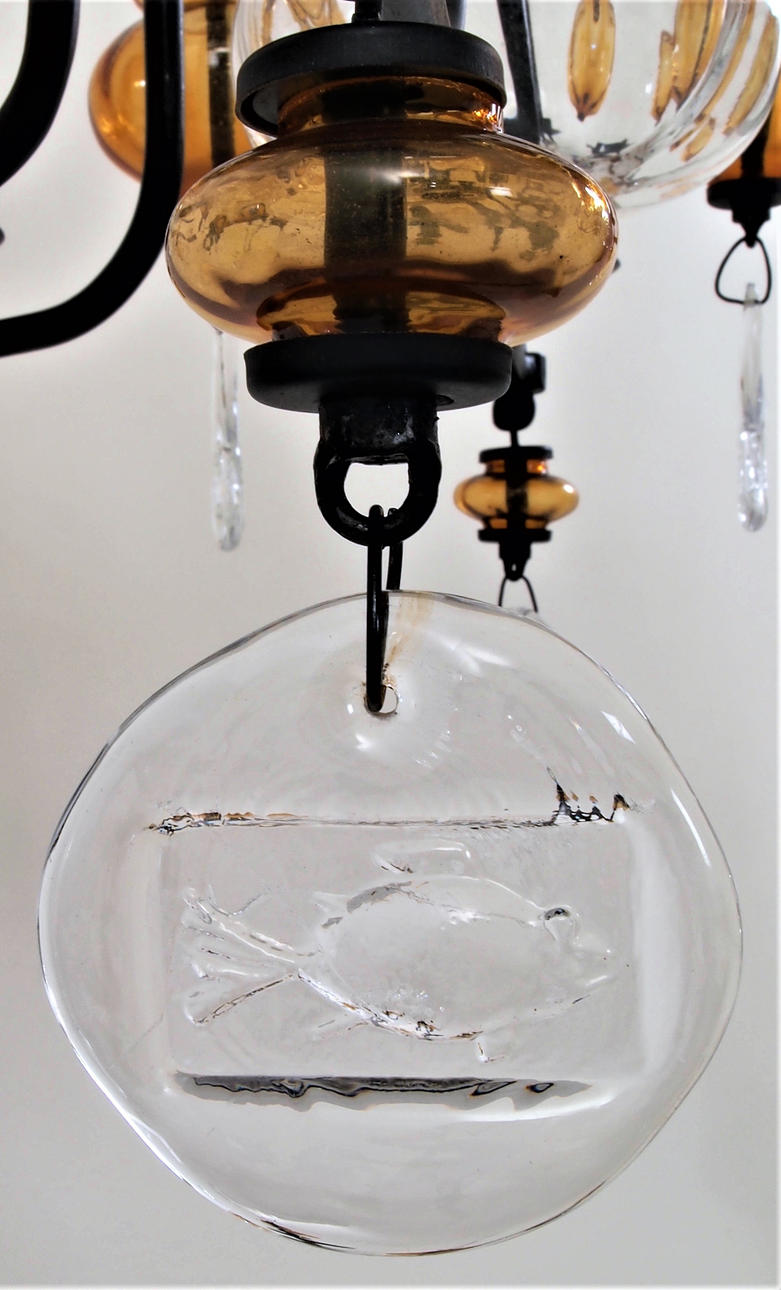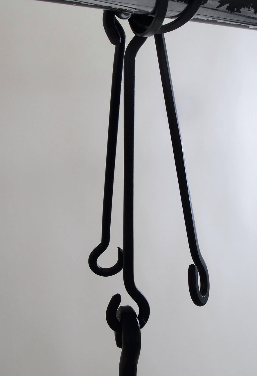 Stel af smedejern og vedhæng af bruntonet og klart glas.
