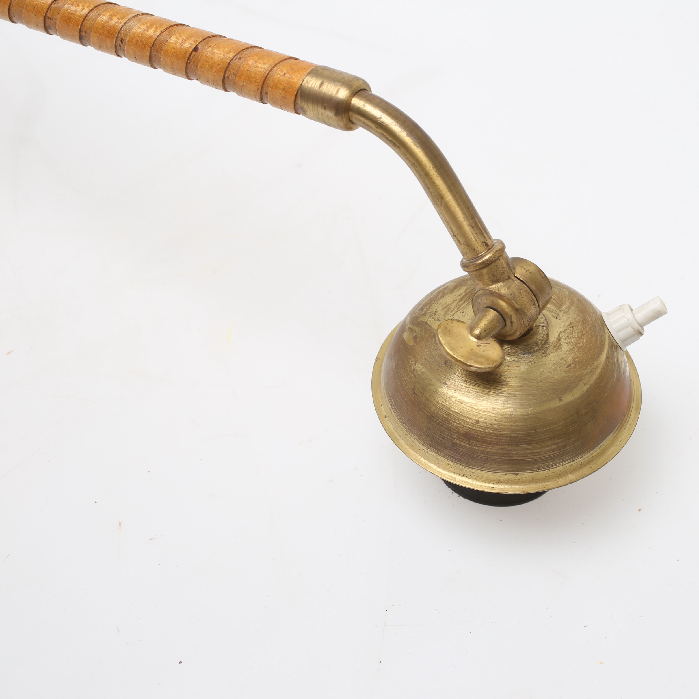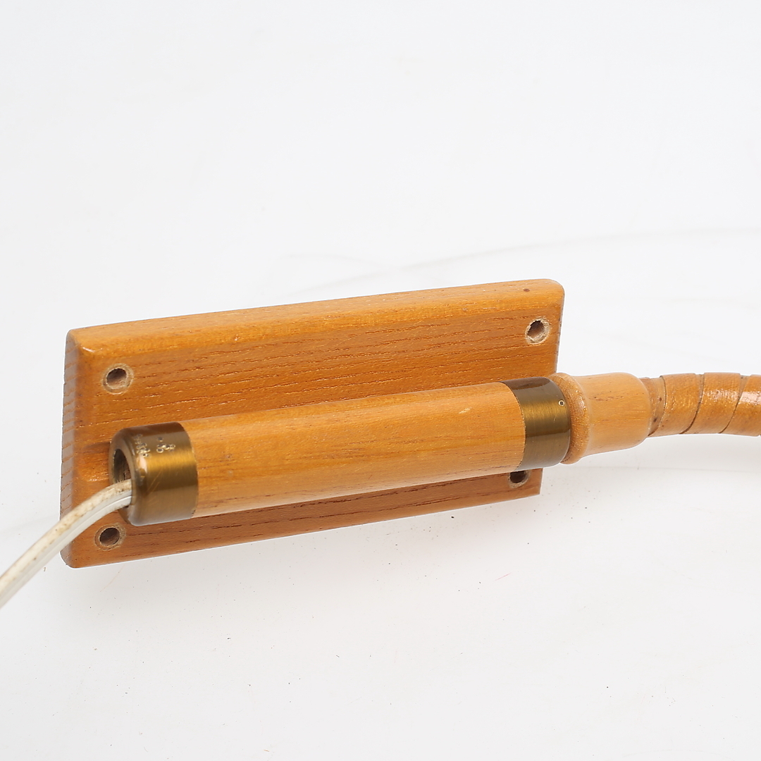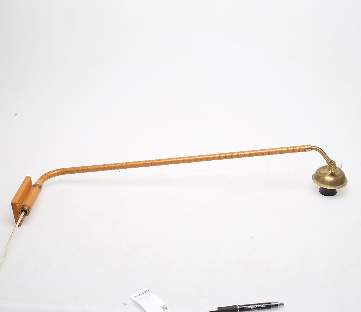866420. Væglampe, træ, rattan, messing.