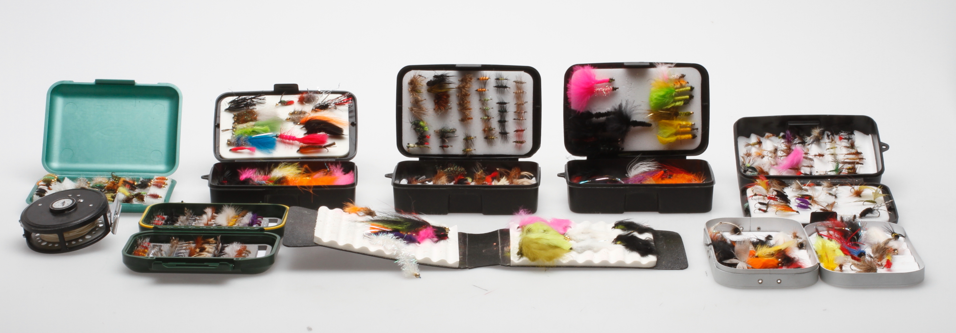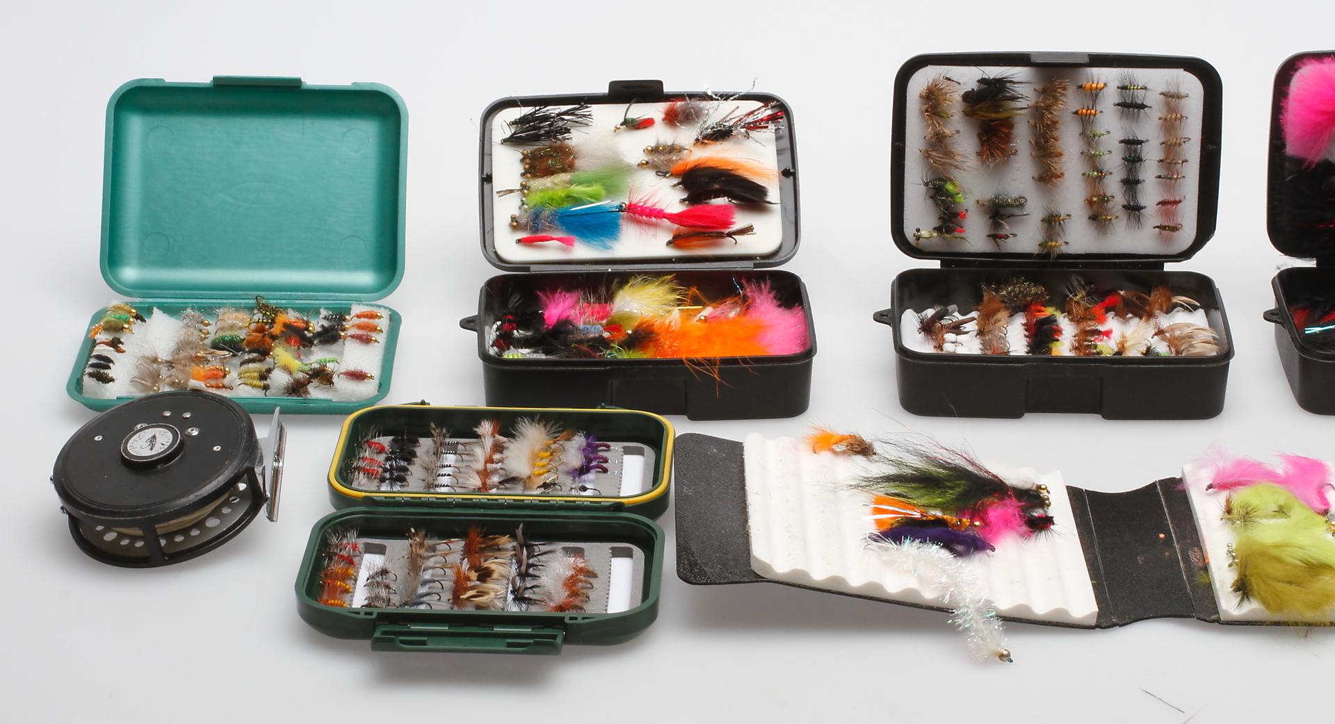 86773. FLUEFISKE TILBEHØR, hjul, fluer.