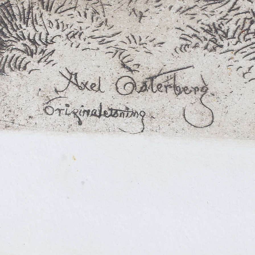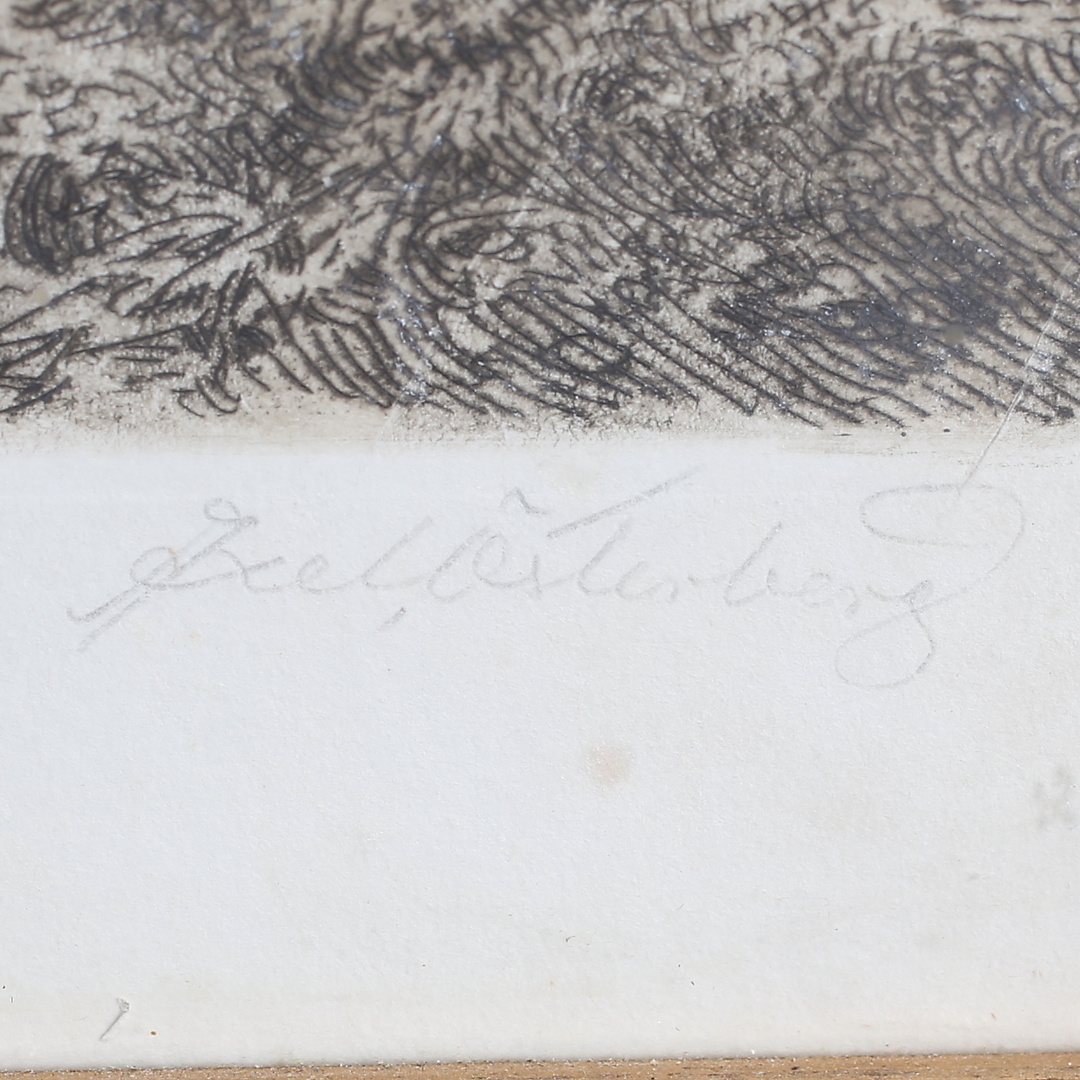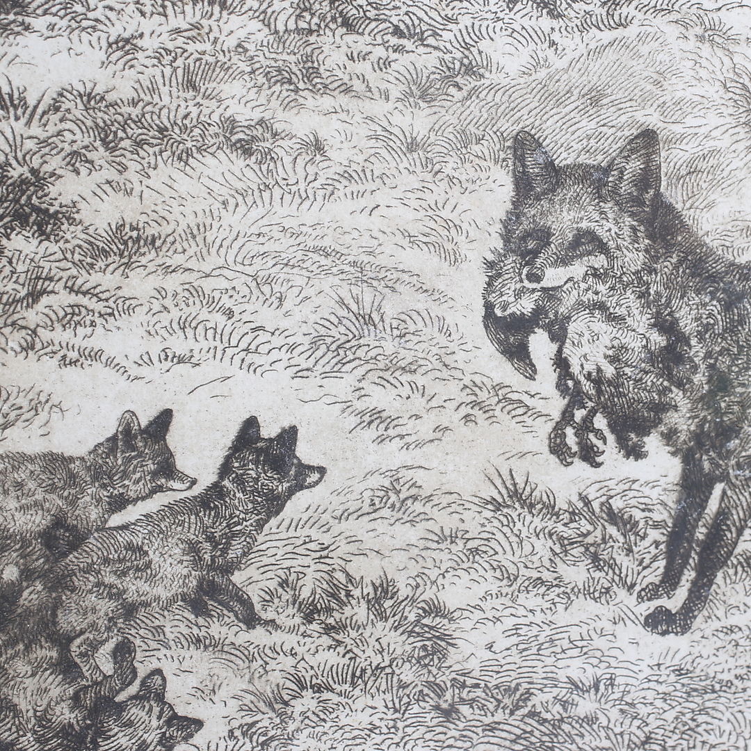 872683. AXEL ÖSTERBERG. Hunræv med unger, ætsning.