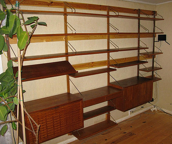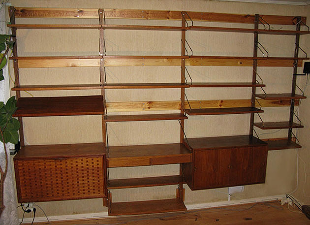 - 3 + 4 hylder, forstærkning foran, fra "Royal system", længde ca 79,5-80 cm, dybde ca 20-24 cm.