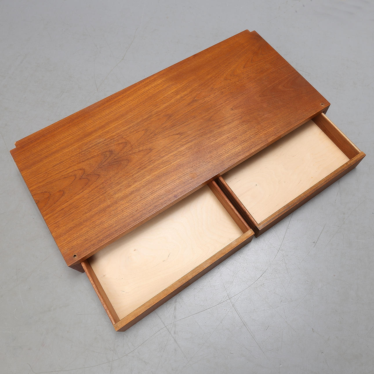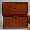- Skab med faldlem, møbleret med stativer og skuffer, fra "Royal system", længde 80, bredde 37,5, højde 42,5 cm.