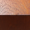 Forskellige positioner på huller i vægbeslagene. Der er savet større affasninger på nogle hylder bagerst.