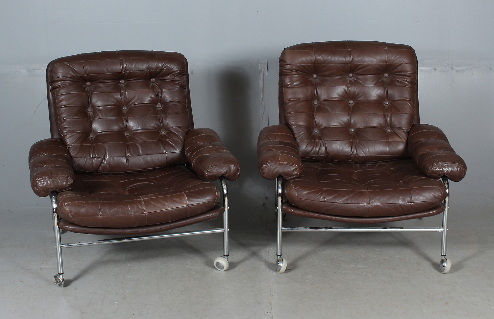 875773. LÆNESTOL, med hjul, 1 par, læder.