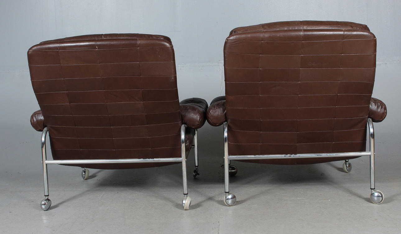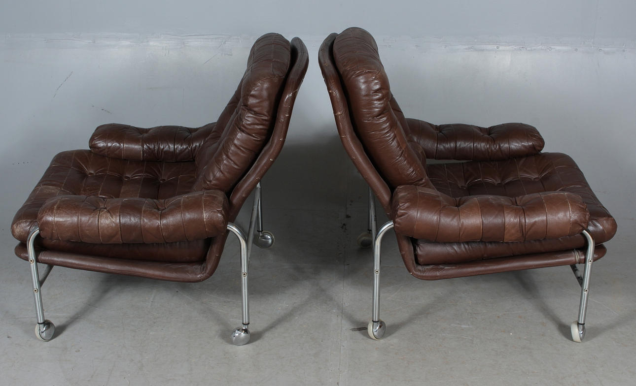 875773. LÆNESTOL, med hjul, 1 par, læder.