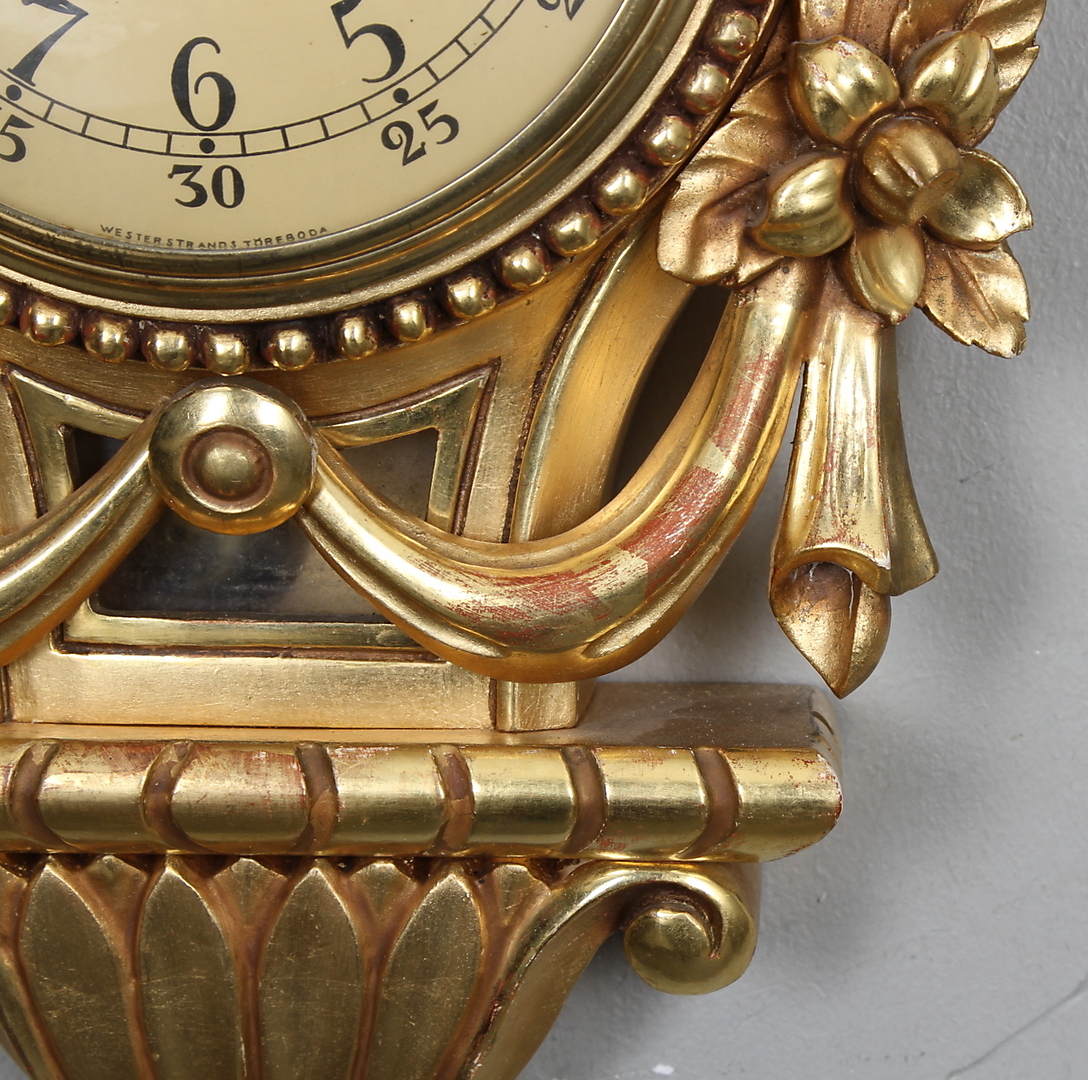 88048. VÆGPENDUL, forgyldt træ, 20. århundrede.