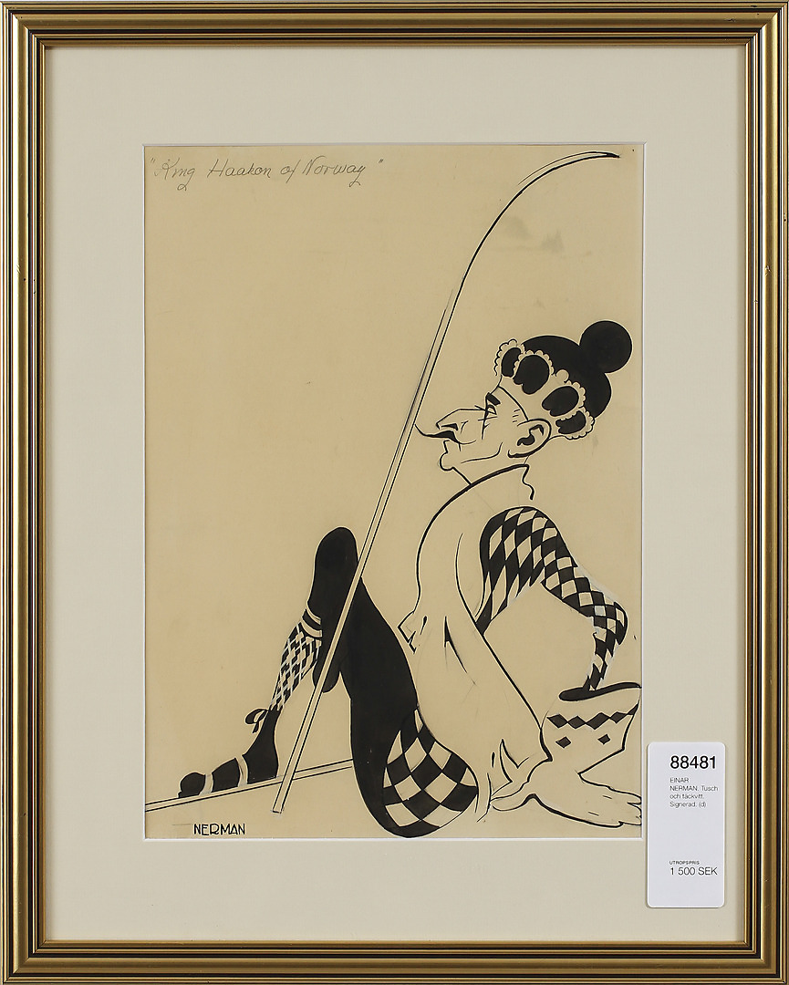 88481. EINAR NERMAN. Blæk og råhvid. Underskrevet.