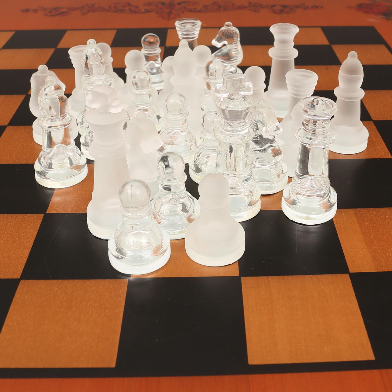 32 glasskakbrikker medfølger.