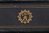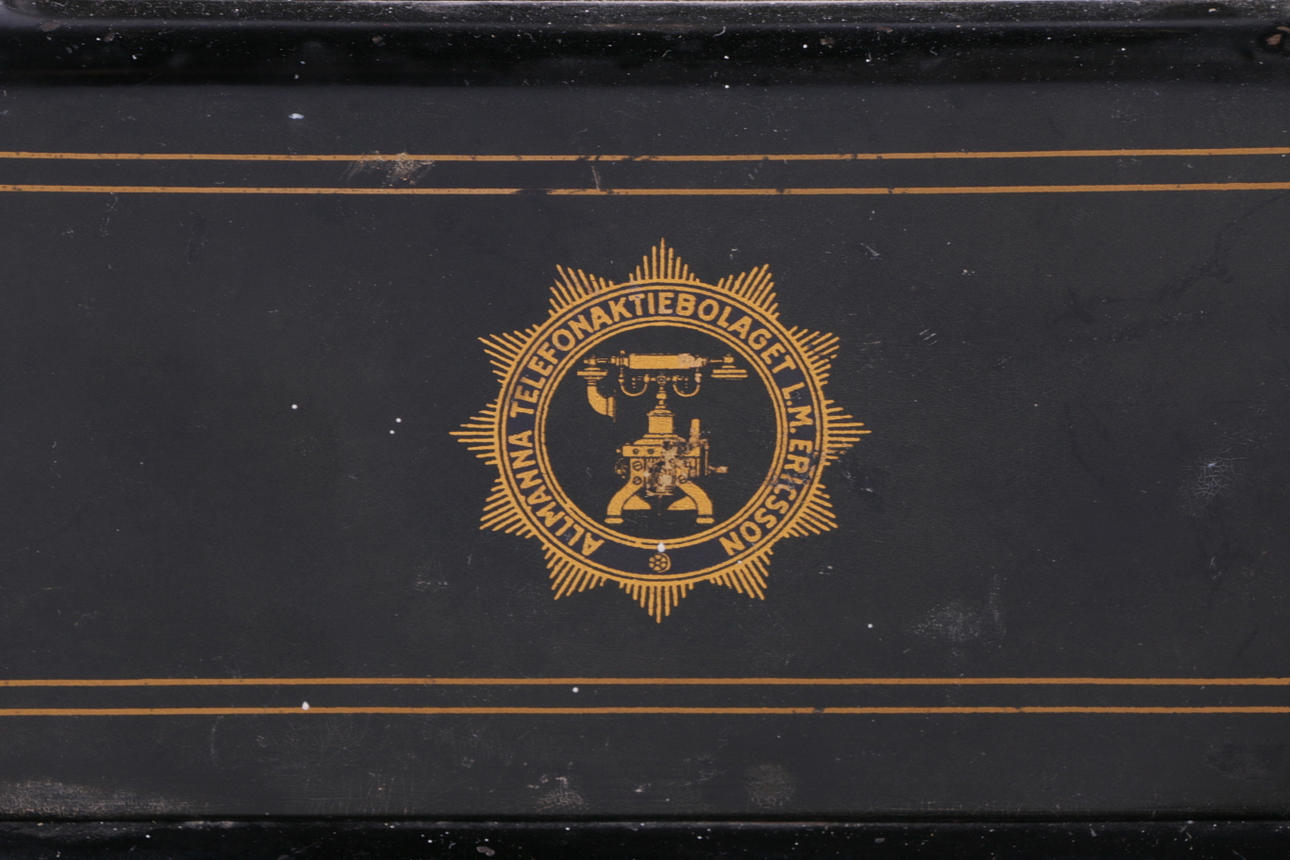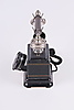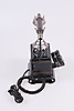 Stel i sortlakeret metalplade, gribebræt. Højde ca: 26, bredde inkl. håndsæt 25 cm.
