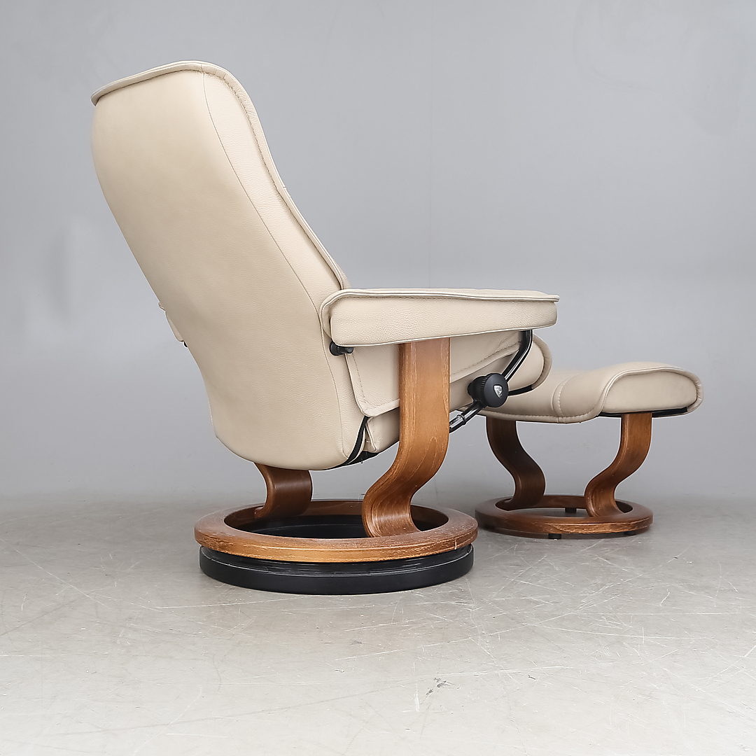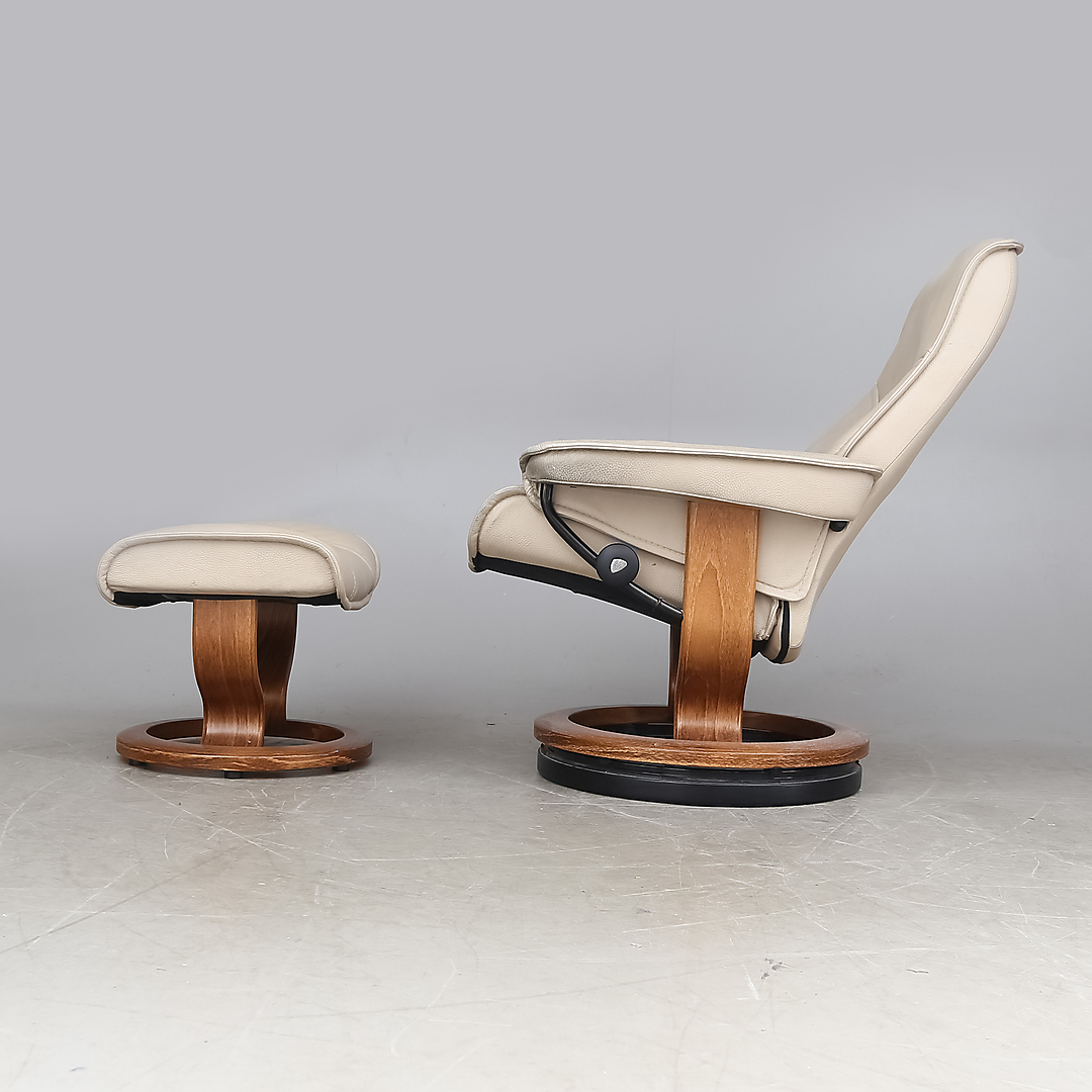 890624. LÆNESTOL og skammel, Stressless.