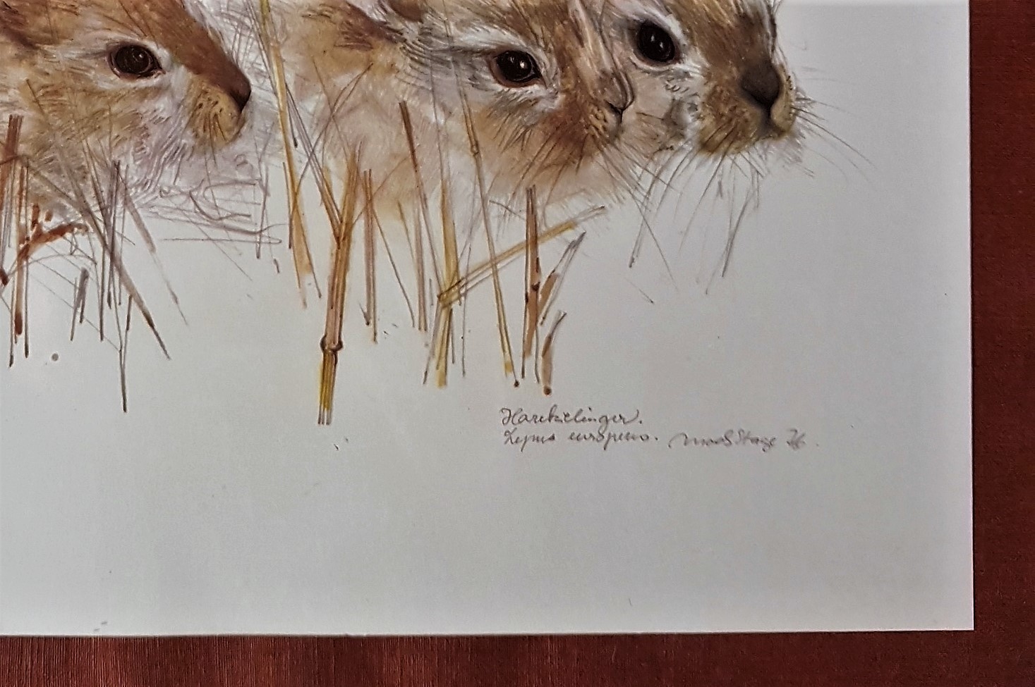 893513. MADS STAGE. Tryk, 4 dyremotiver, signeret, dateret -76.