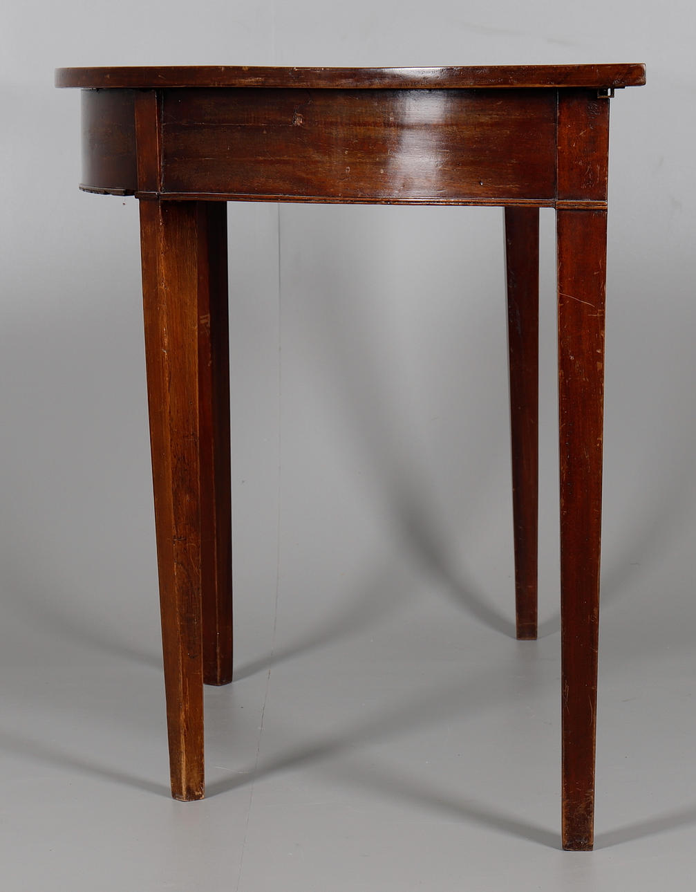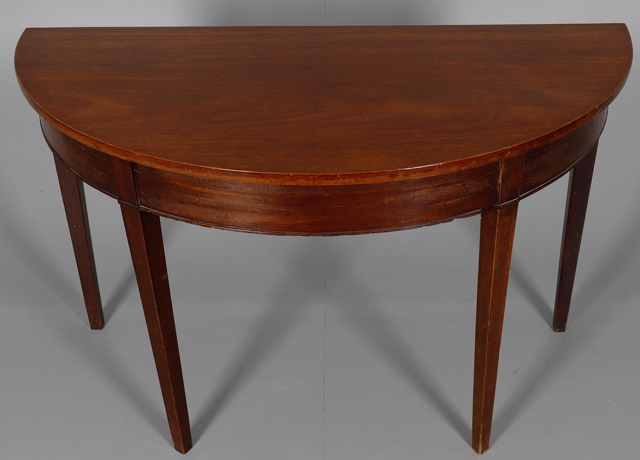 895455. EN GEORGE III MAHOGNY HALVCIRKULÆR BORDENDE.