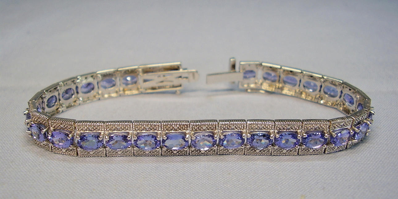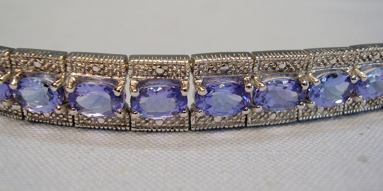 Længde 19 cm, bredde 0,9 cm, tanzanit tilsammen ca. 12 øre