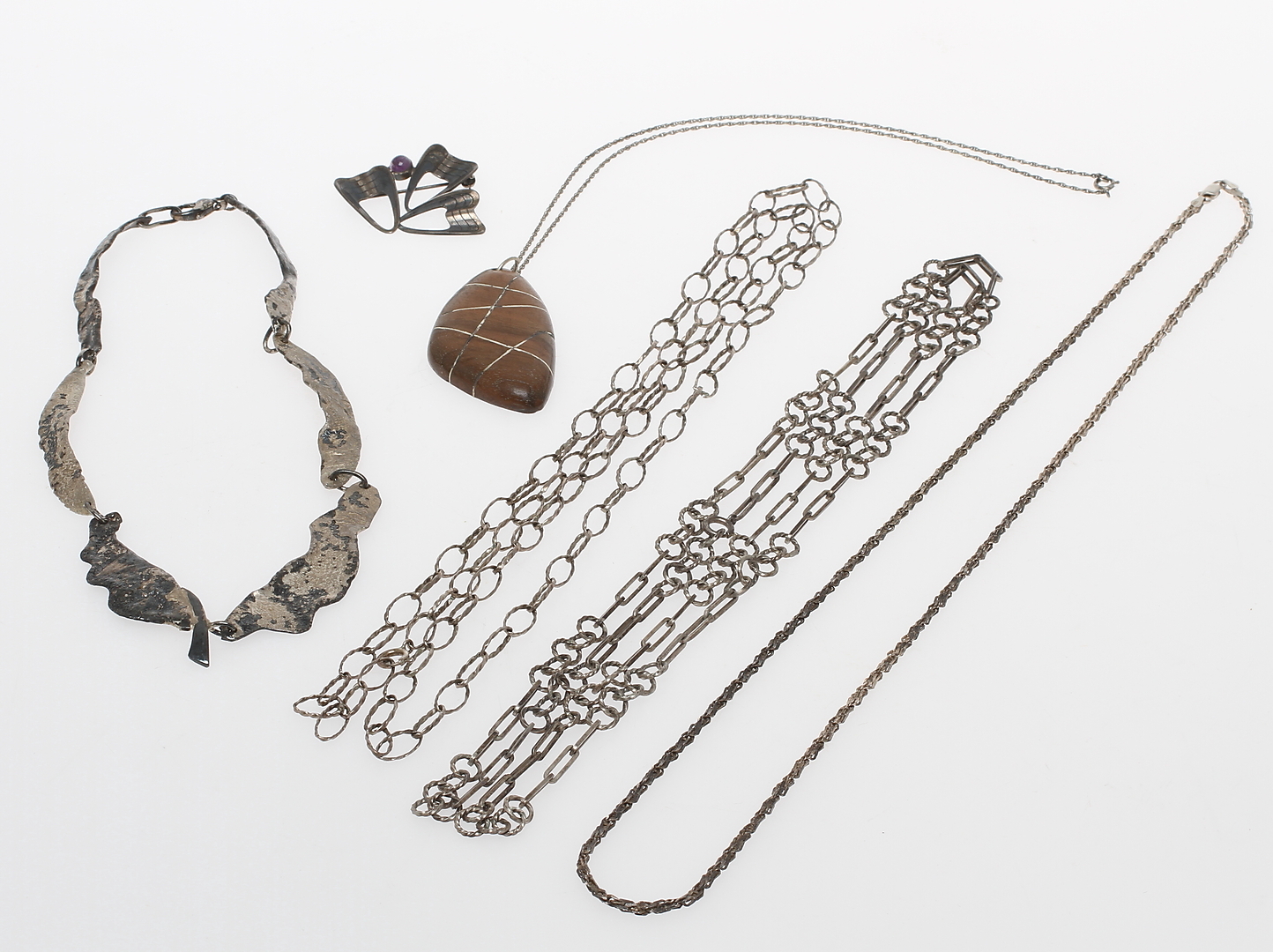 89812. SMYKKER, 6 dele, sølv, 20. århundrede.