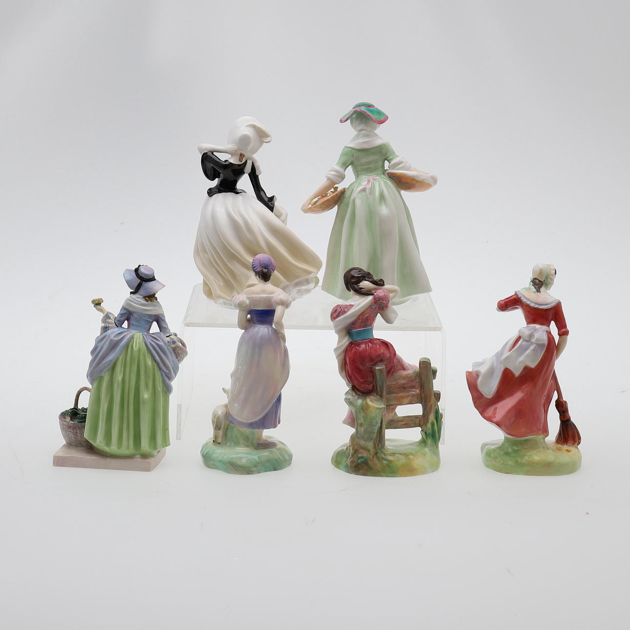 Indeholder en Royal Doulton figur af Autumn Breezes HN 2147, en Royal Doulton figur af Summer HN 2086, en Royal Doulton figur af Spring HN 2085, en Royal Doulton figur af Autumn HN 2087, en Royal Doulton figur af Daffy Down Dilly HN 1712, en Royal Doulton figur af Spring Flowers HN 1807, 18,4 cm til 20,5 cm (6).