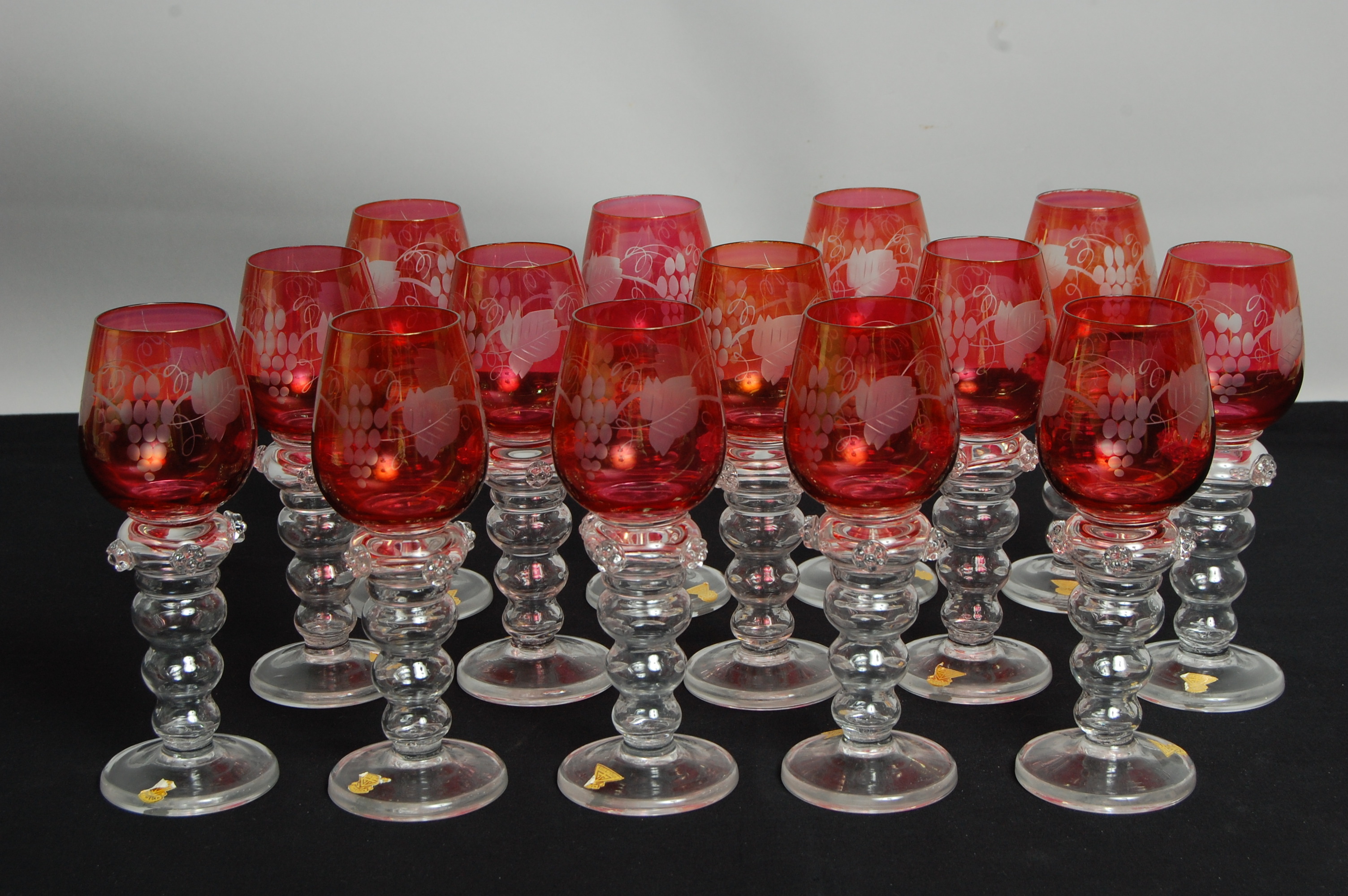 90343. VINGLAS, 14 stk, Guldskrue.