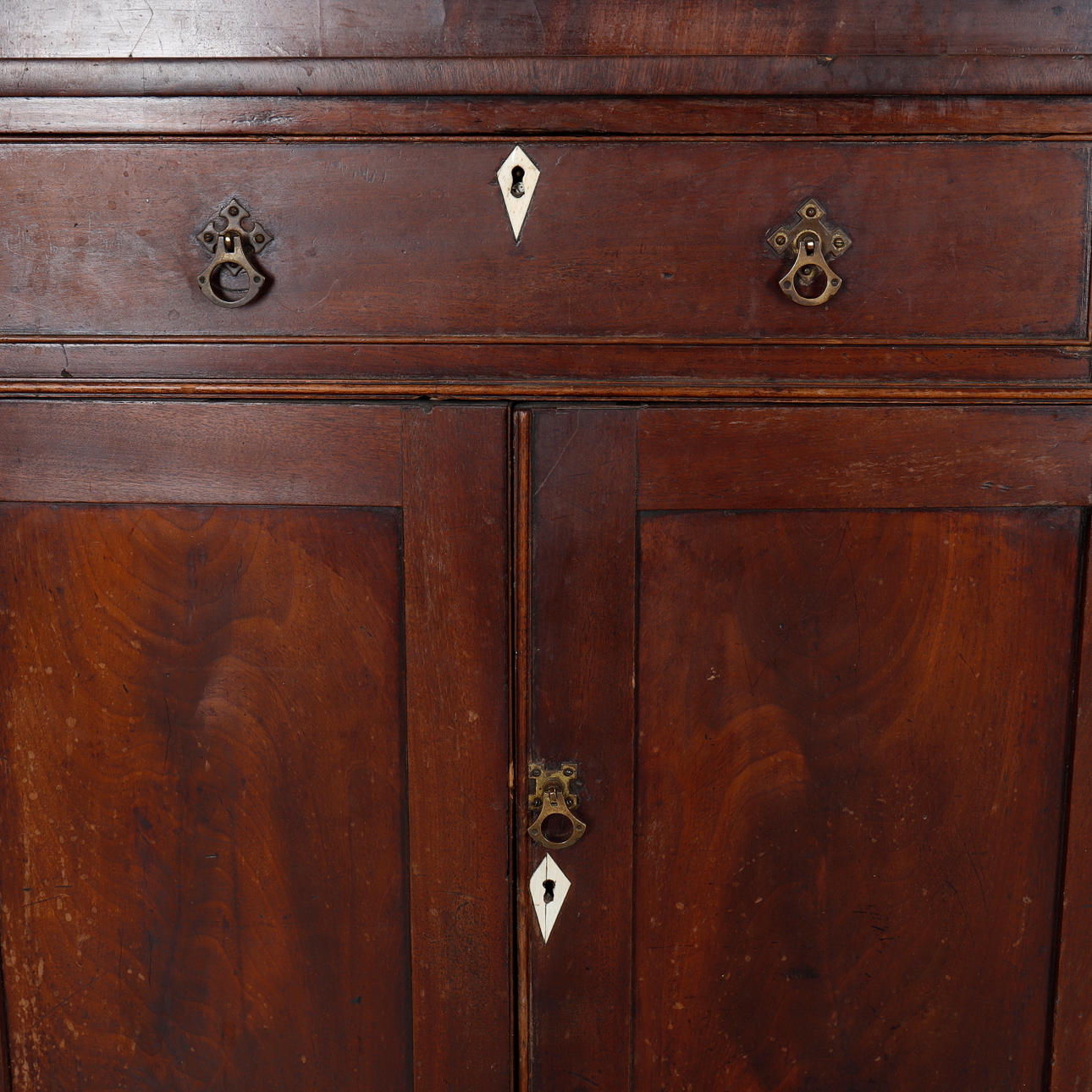 Mærker, stød, ridser, afskrabninger i forhold til alder og brug, Håndtag kan godt være originale, Toppen med ringmærker, også med andre pletter på dørene.