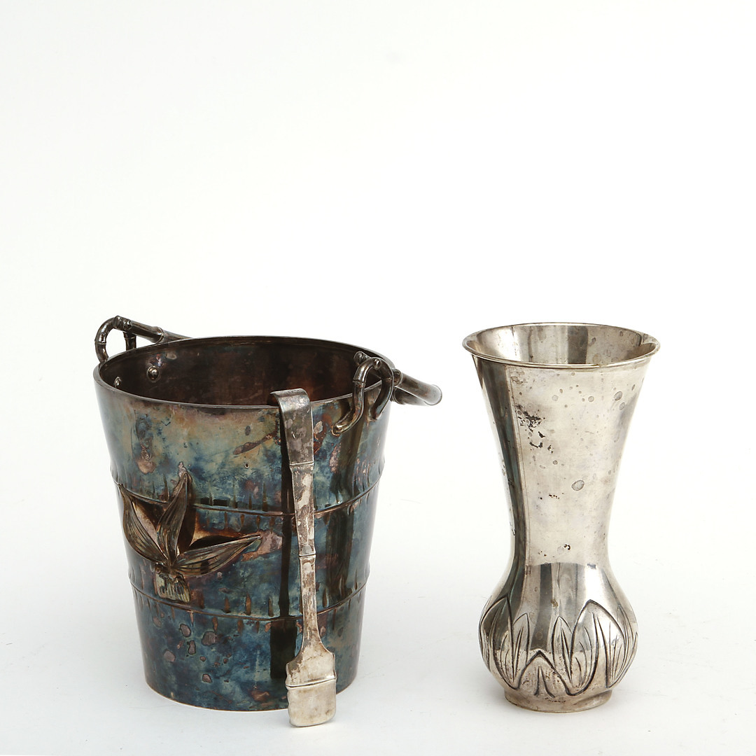 908136. ISPAND med TANGE og VASE. Sølv.