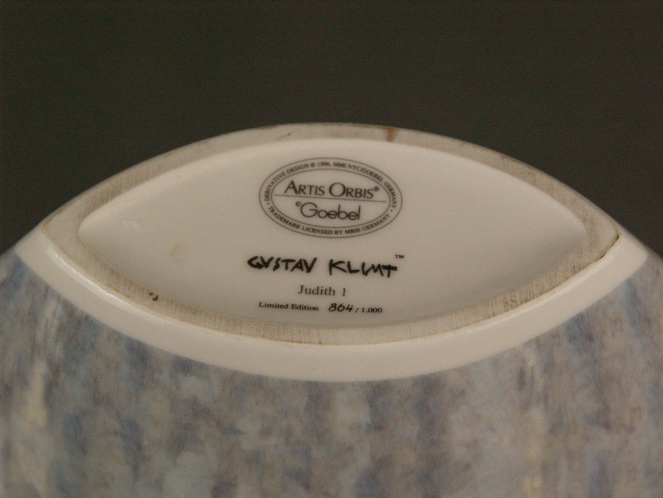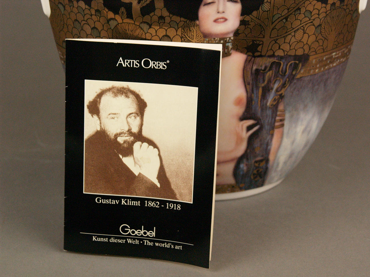 Håndtagsvase - Artis Orbis Goebel, Gustav Klimt "Judith I" vase, begrænset oplag nr. 864 fra 1000 eksemplarer, her Ex.864, all-round indretning baseret på maleriet Judith I af Gustav Klimt, oval vase med to hævede hanke, med certifikat, H.ca.23cm.
