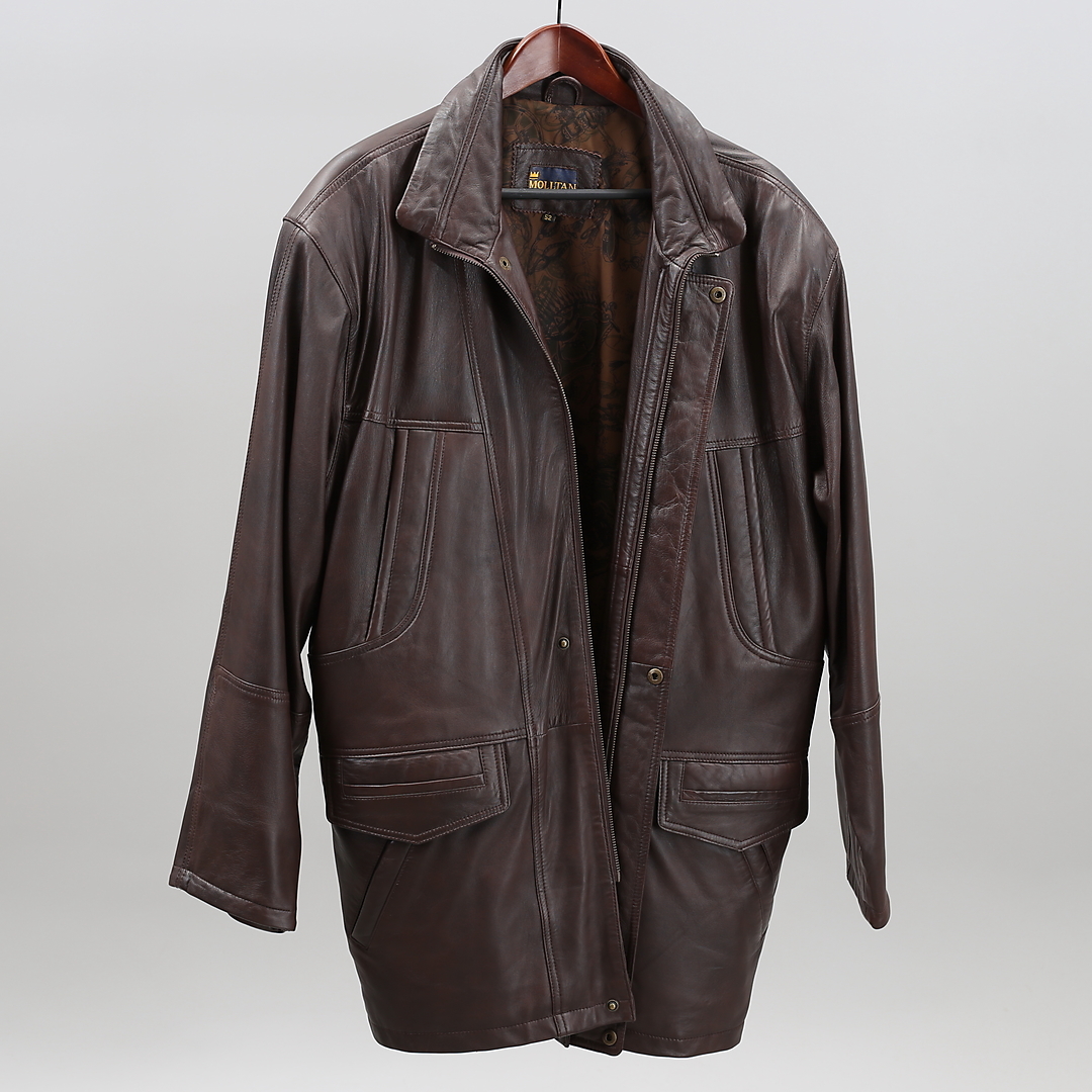 909700. HERREJAKKE, læder, Molltan.