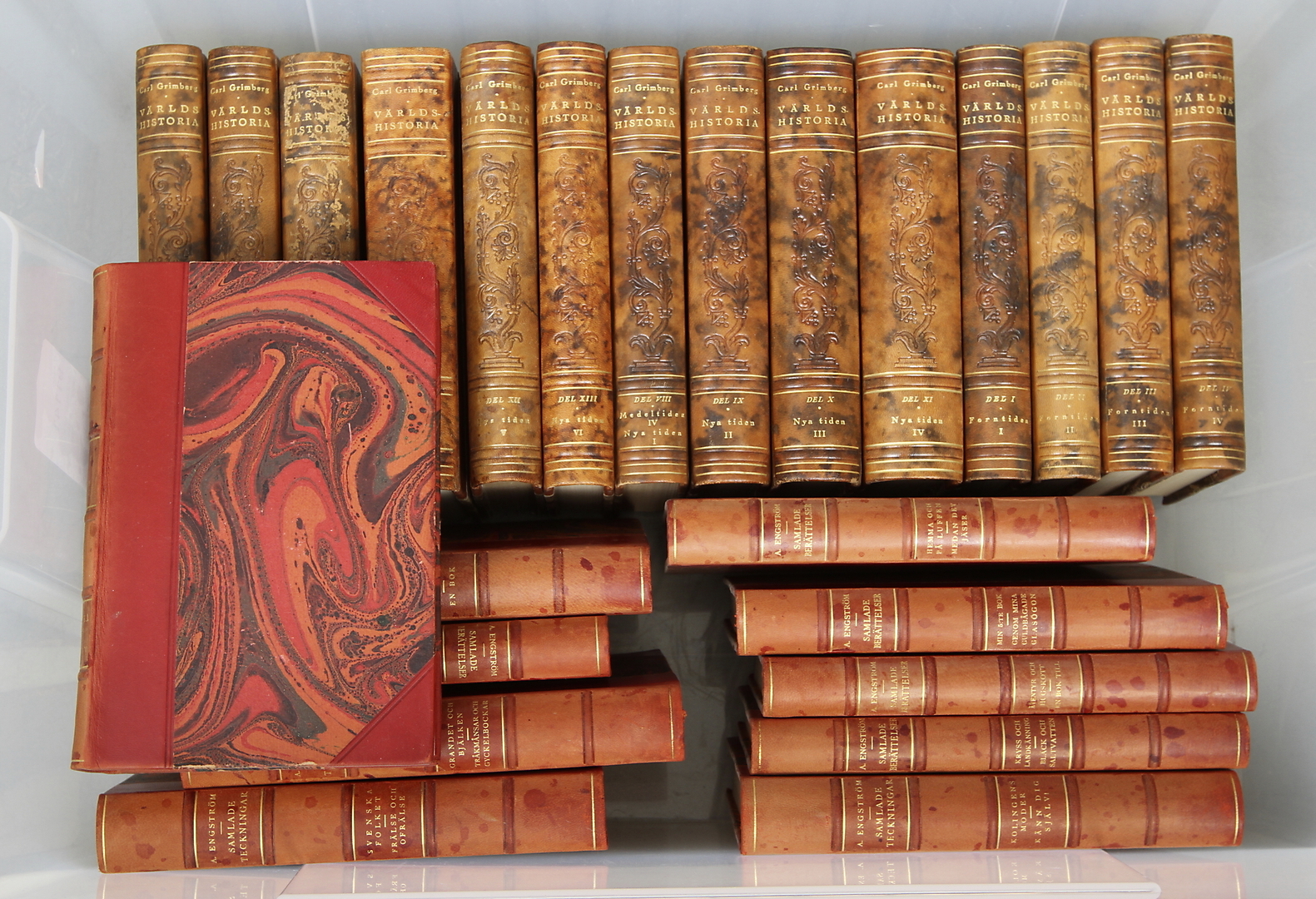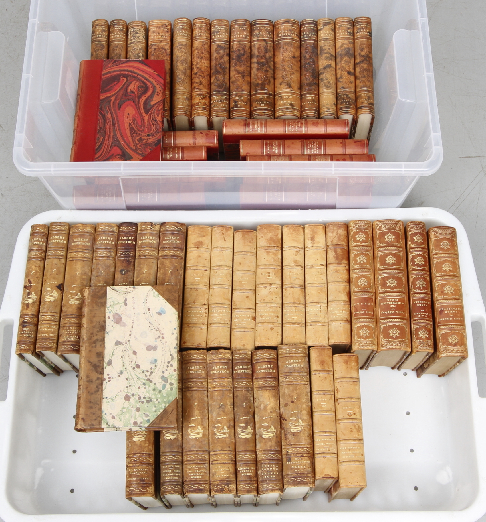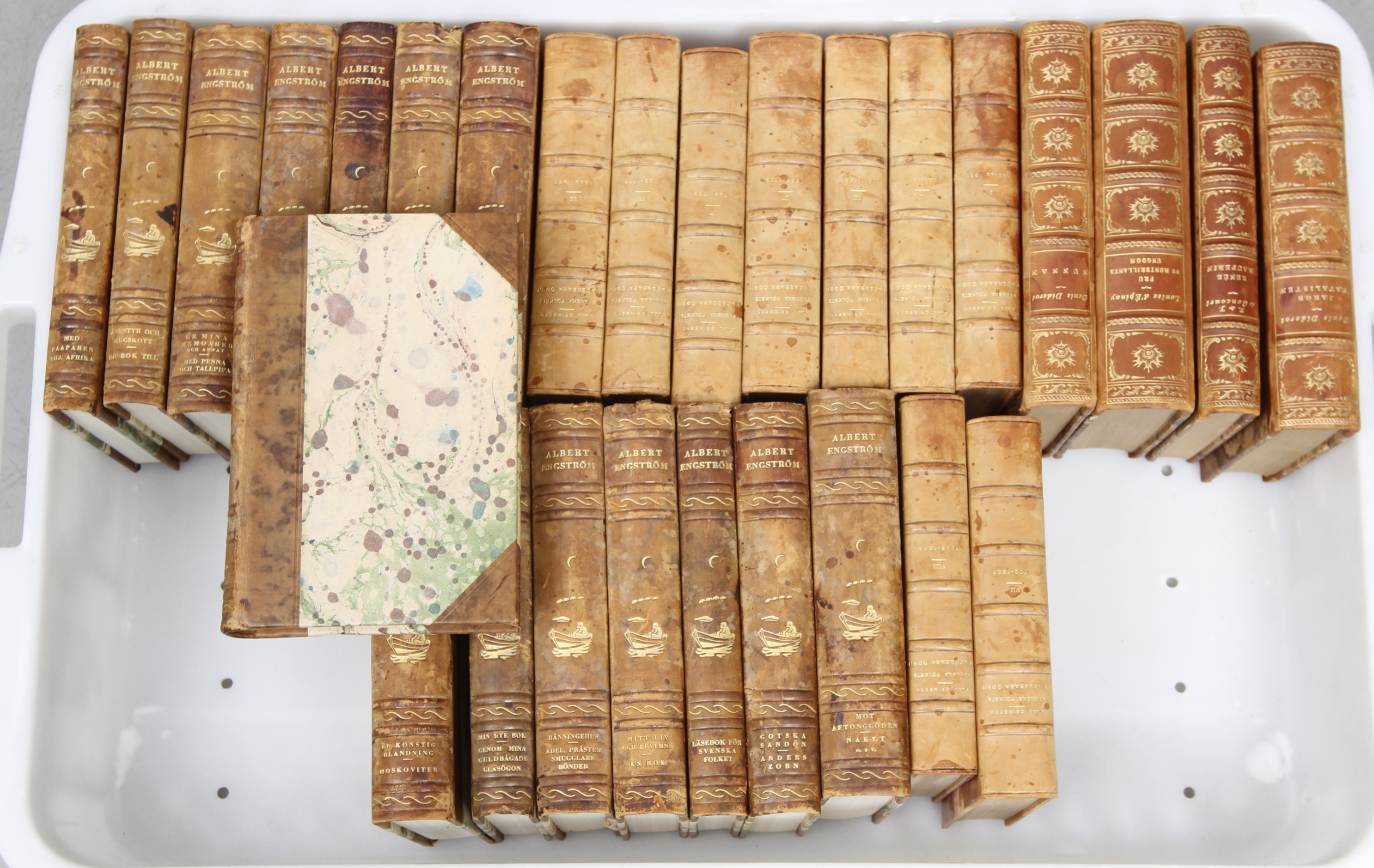 91141. BØGER, 52 stk, læderremme, bl.a. Albert Engström.