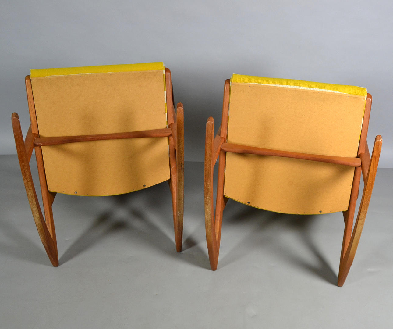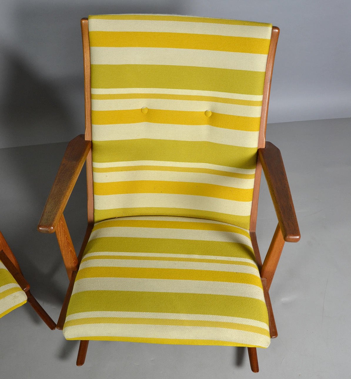Design Holger Georg Jensen 1958 Fremstillet hos Tønder Møbelværksted Stel af teak med polstring og stofbeklædning.