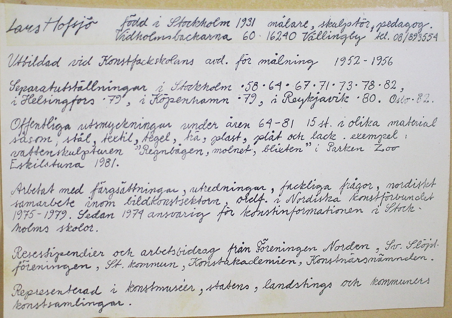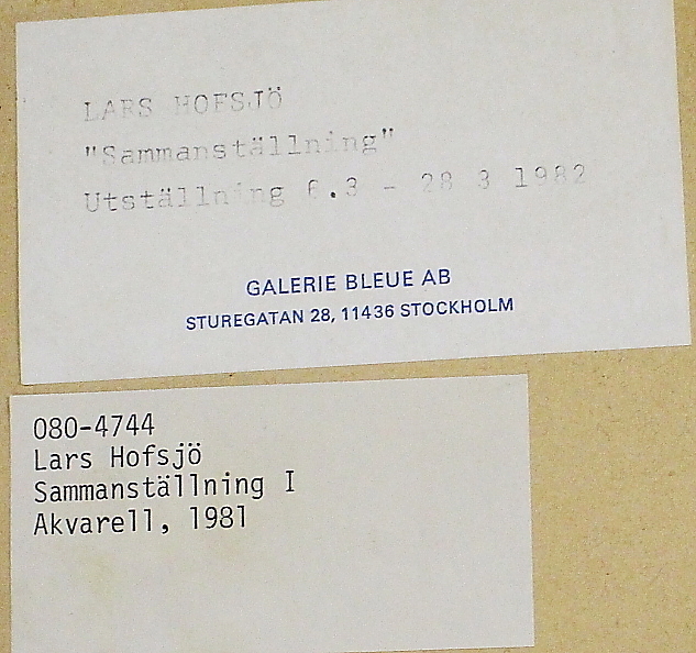919170. LARS HOFSJÖ. Akvarel, "Compilation" signeret/dateret 1981.