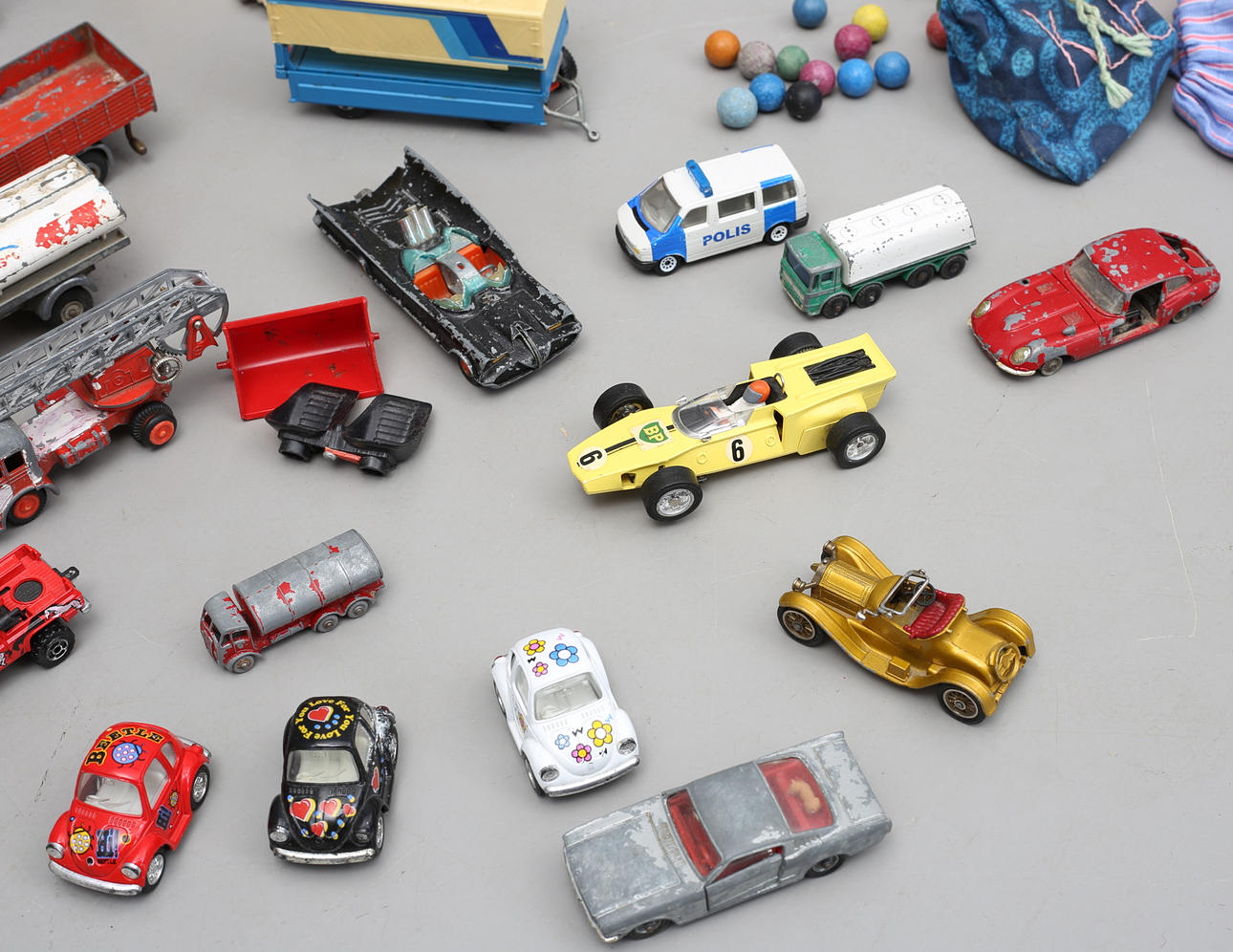 Legetøjsbiler slidte og defekte.