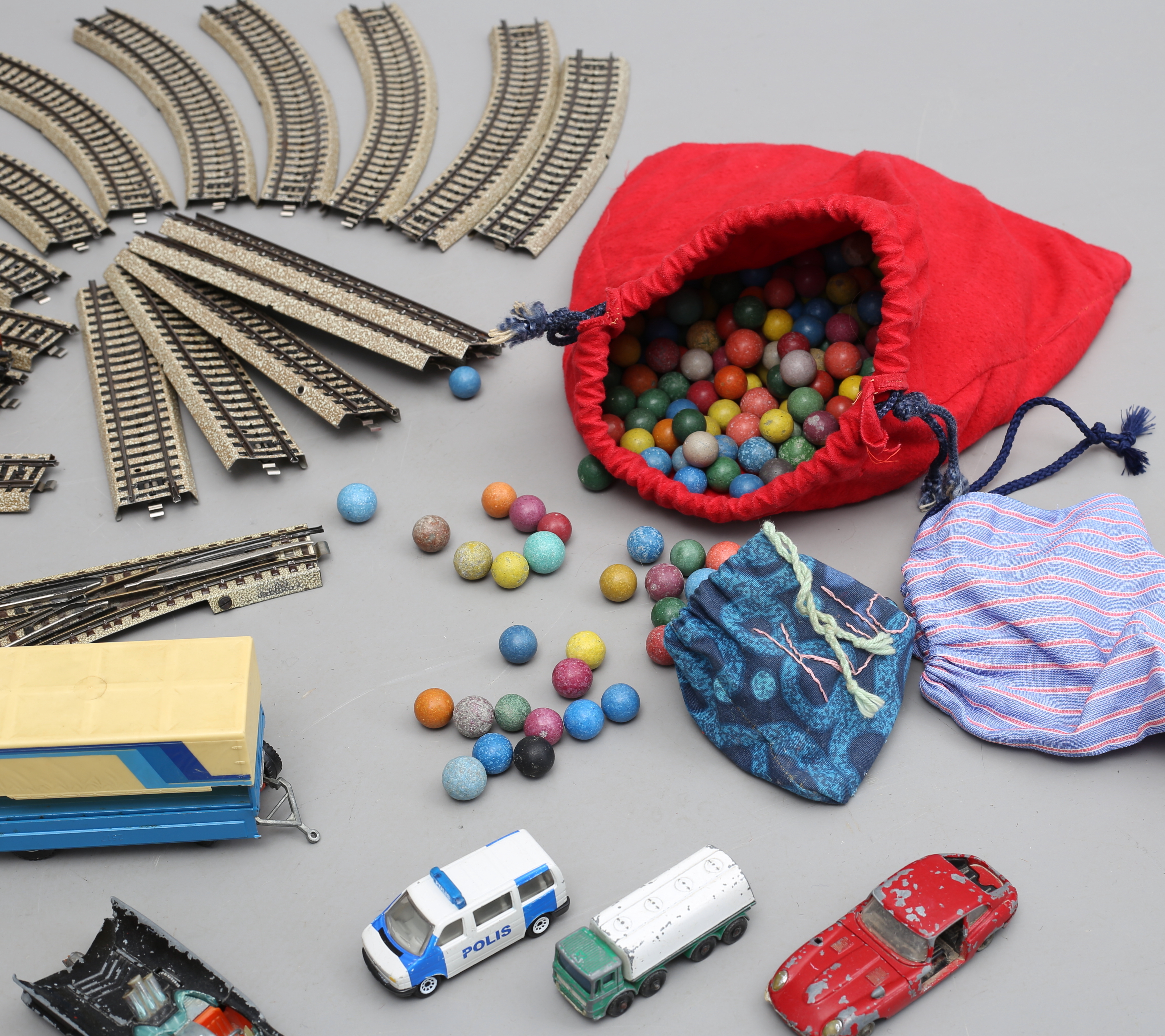 922115. LEGETØJSBILER, MÆRKER, NÅL, KUGLER, SPIL, 1900-tallet.