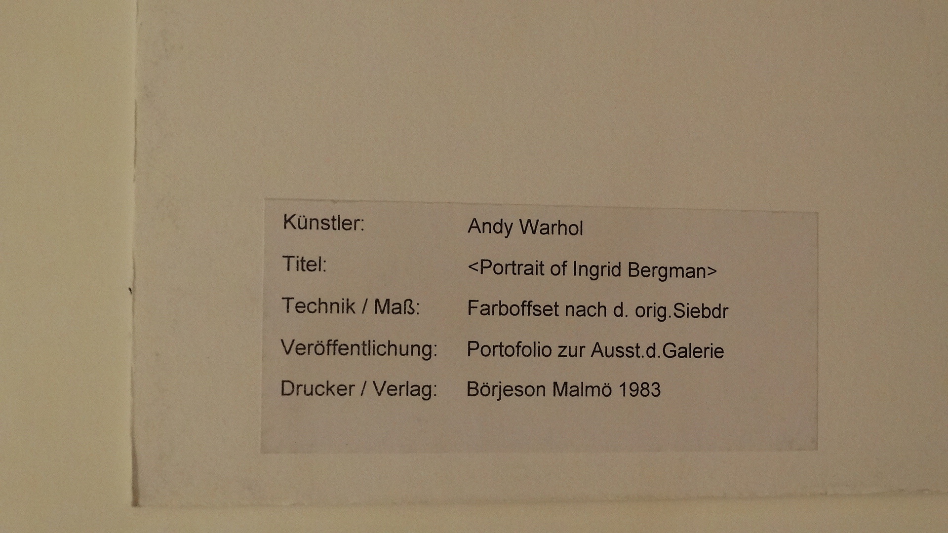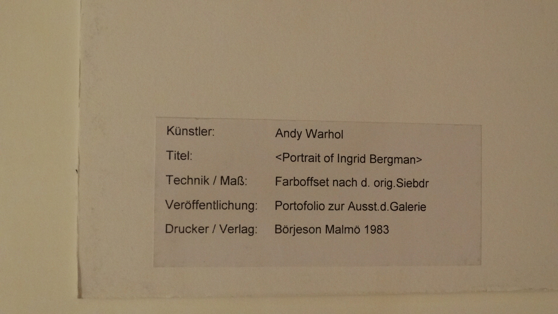 929926. ANDY WARHOL: INGRID BERGMAN, FARVE OFFSET, MALMÖ, 1983.