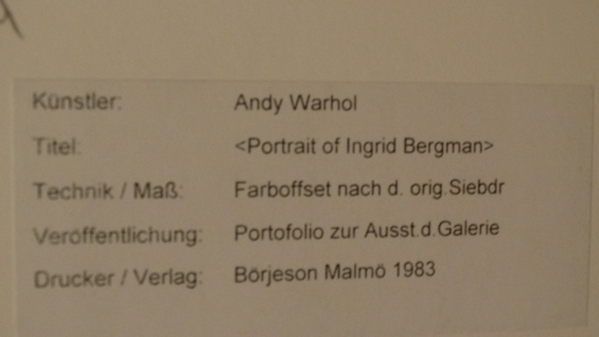 929927. ANDY WARHOL: INGRID BERGMAN, FARVE OFFSET, MALMÖ, 1983.