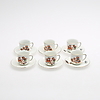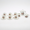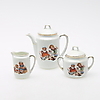 Bestående af seks kopper med underkopper, kaffekande, sukkerskål og flødekande. Kaffekandens højde er ca 14 cm.
