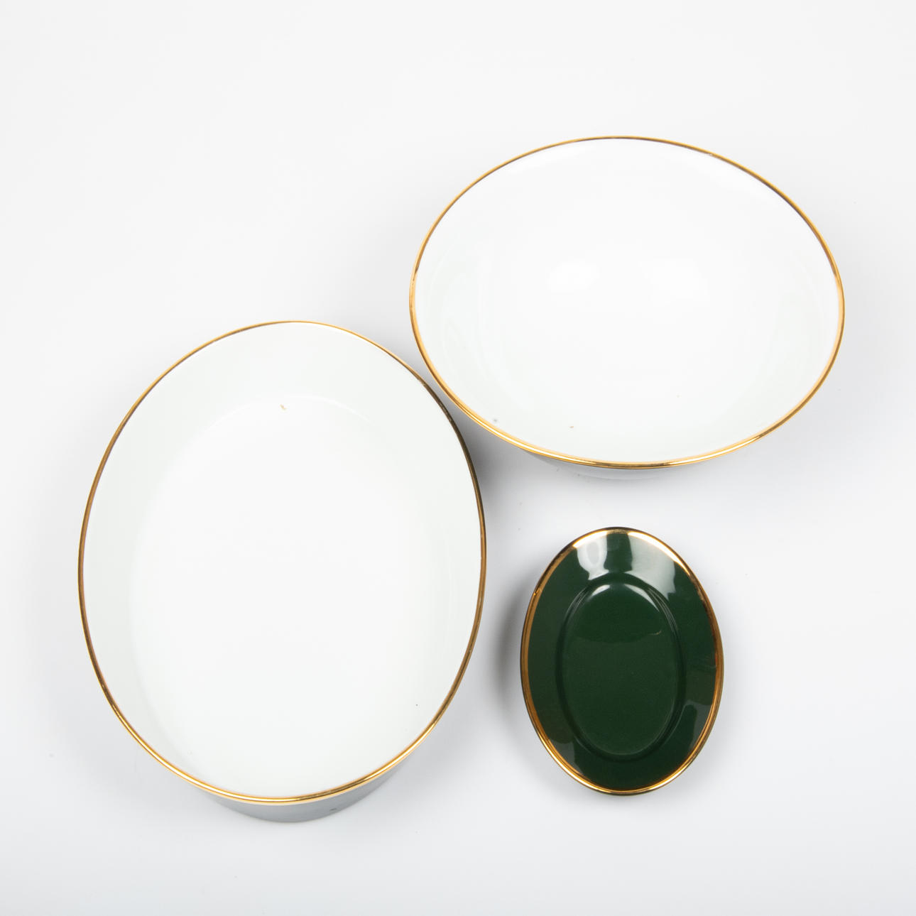 12 tallerkener diameter 27 cm En skål, en form, et fad og en sauceskål.