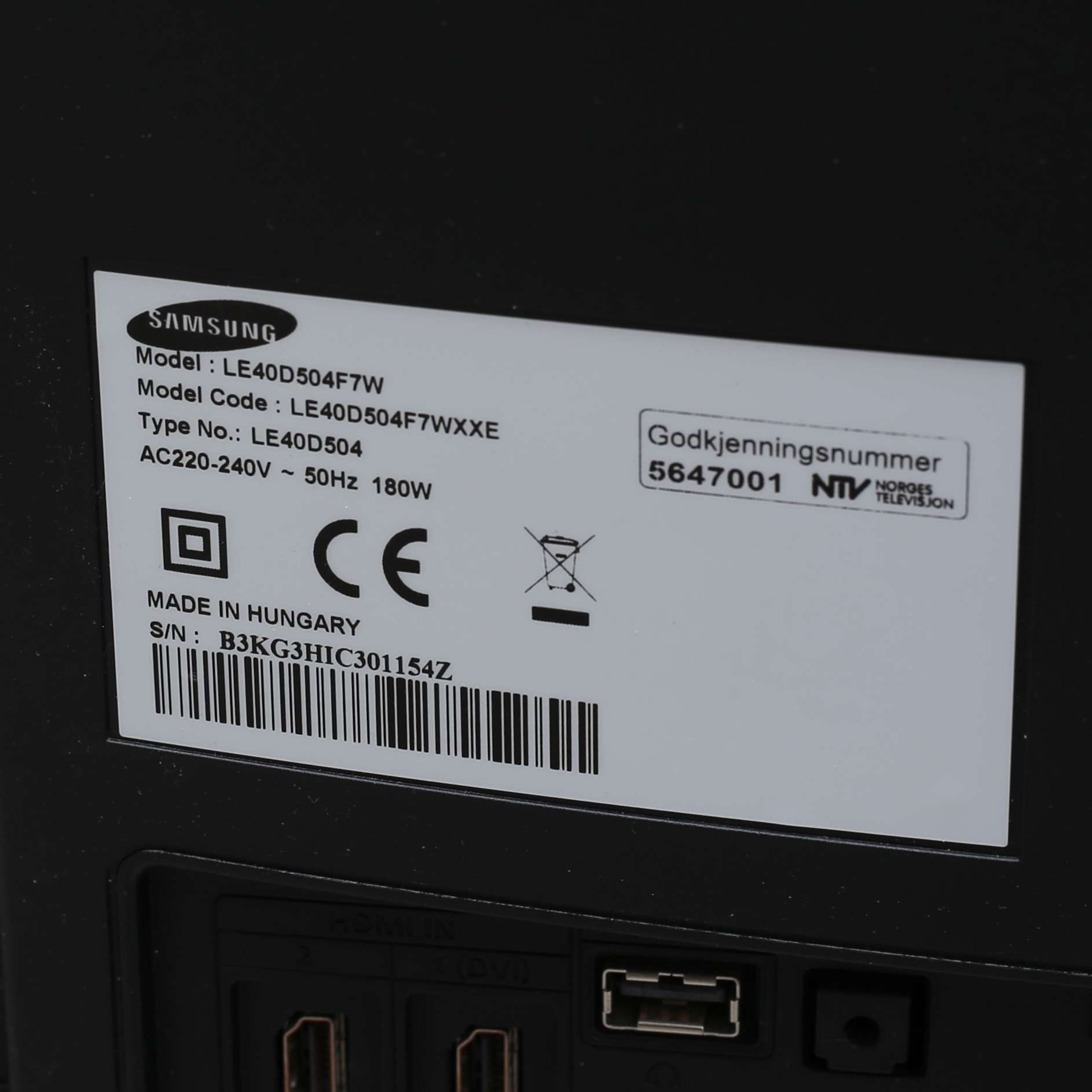 939128. LED TV, Samsung LE40D504F7W, 40".