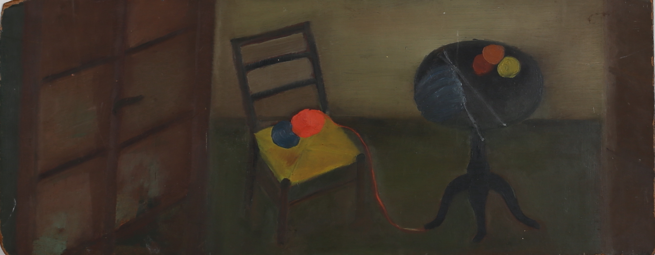 94218. GUNNAR TORHAMN. Interiør. Olie på Panel. Usigneret.