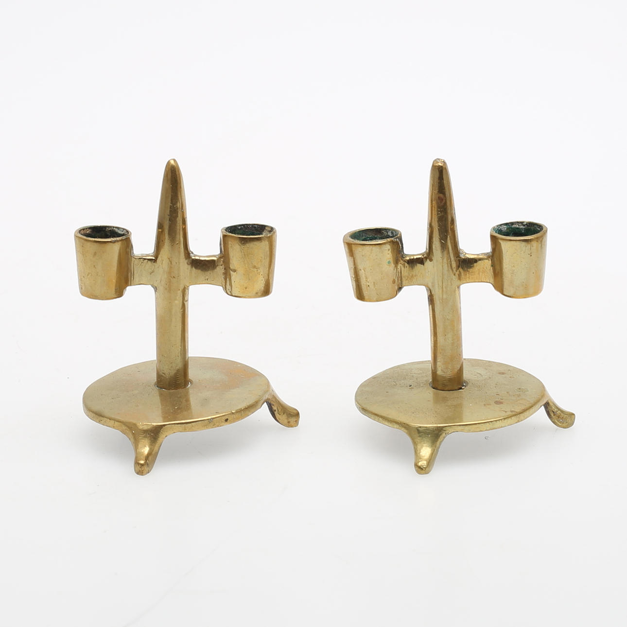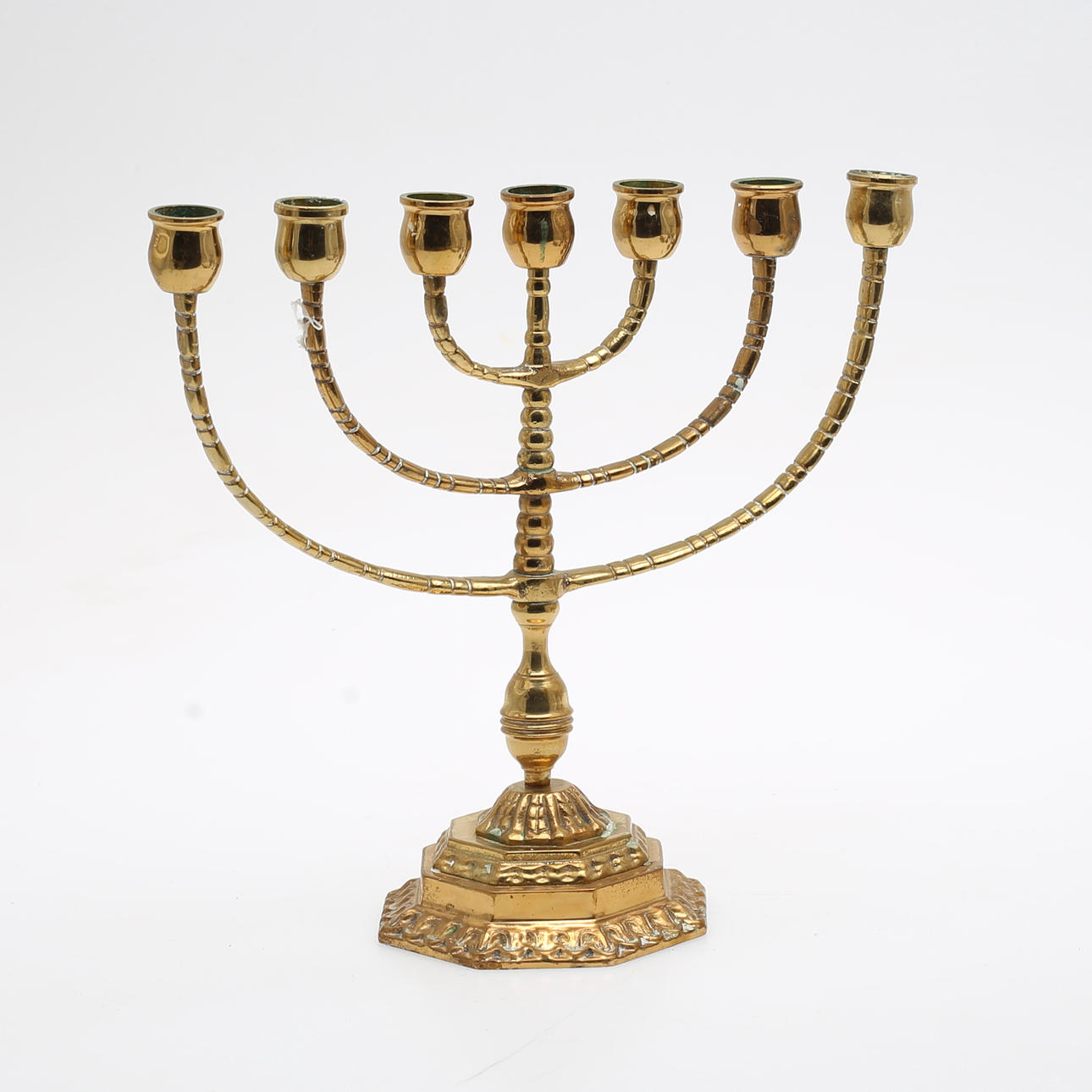 Menorah kandelabre, højde 26,5 cm. Lysestage, Gunnar Ander, Ystad Metall, højde 10 cm.