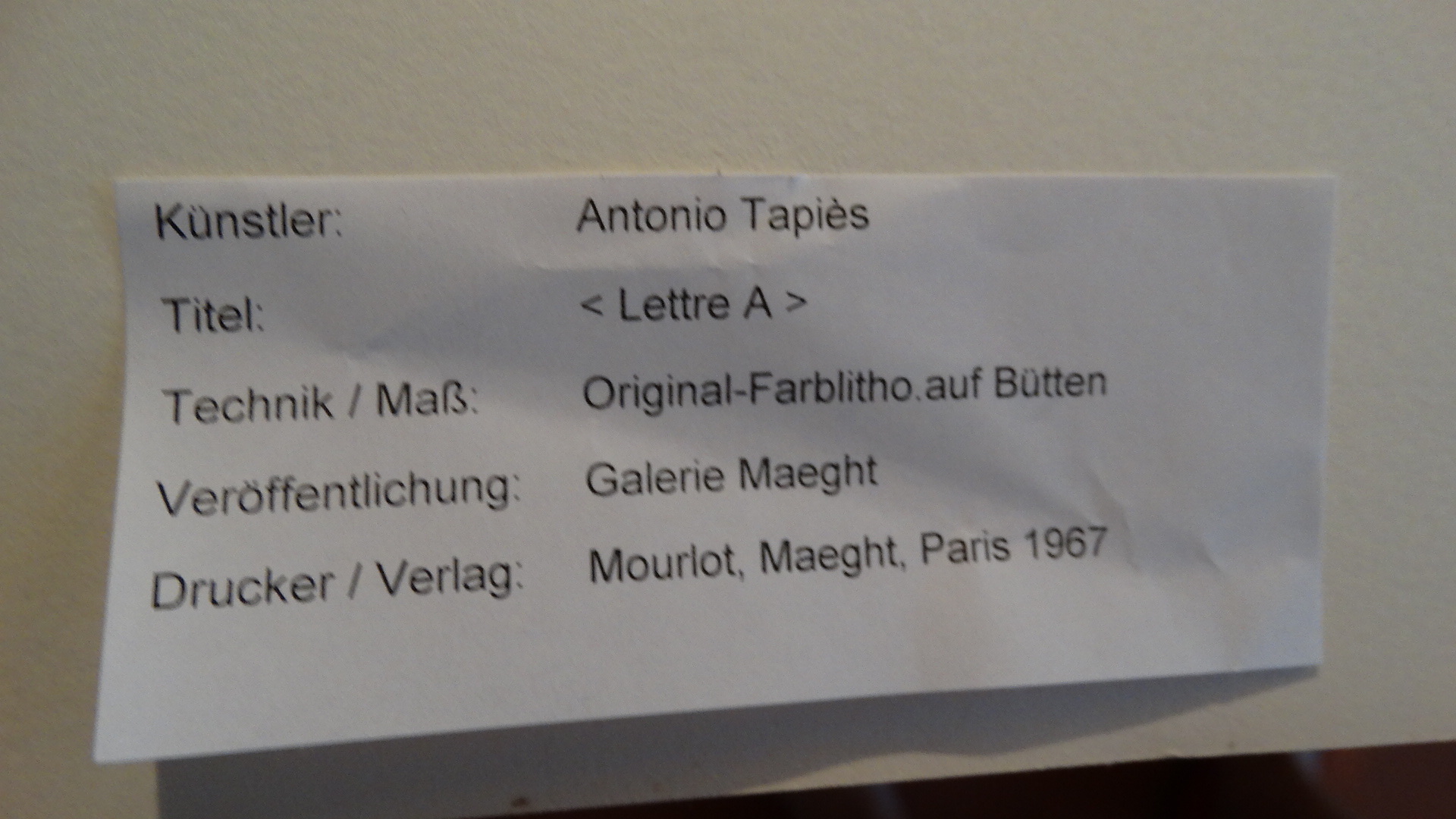 946495. ANTONI TAPIES (1923-2012), FARVELITOGRAFI, 1967.