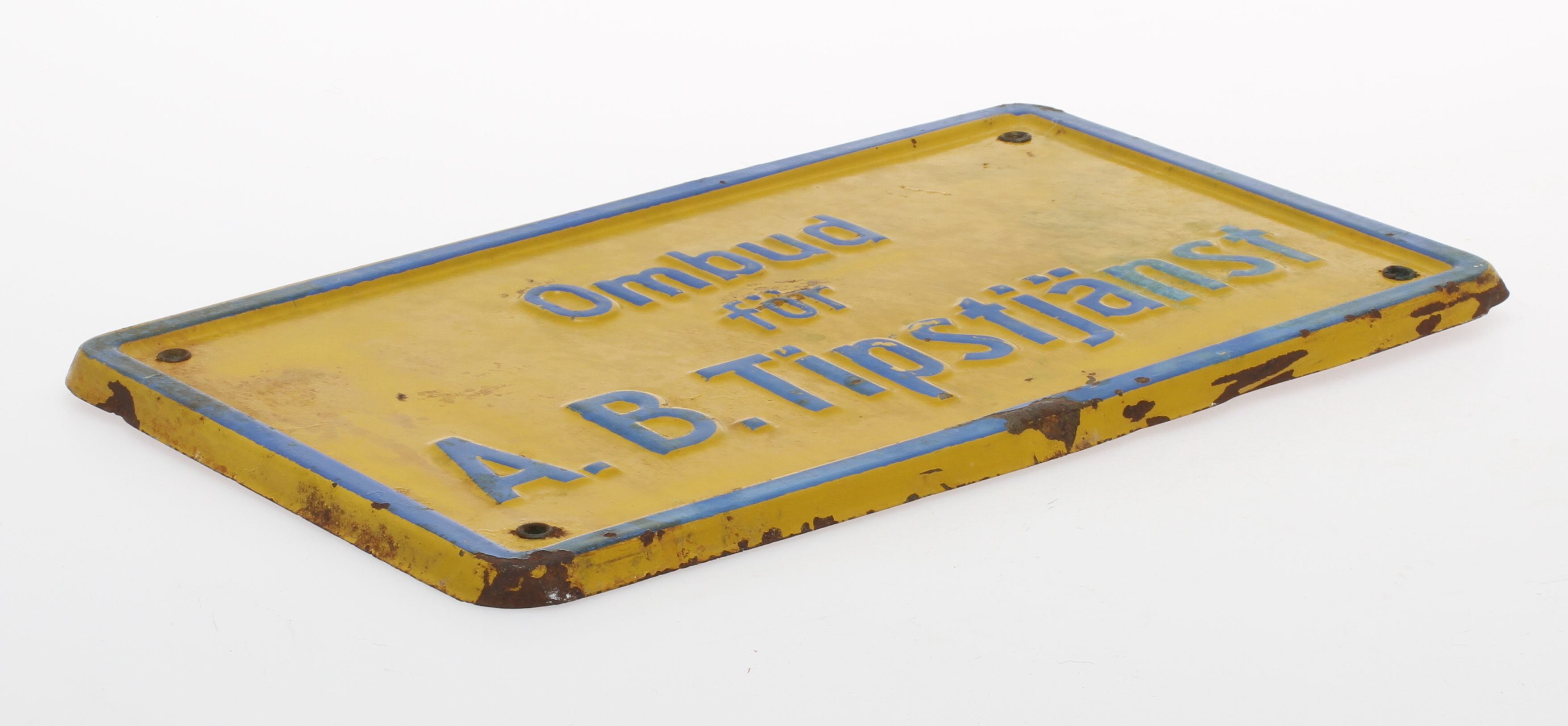 95099. SKILT, metal, "Agent for A. B. Tip service ".