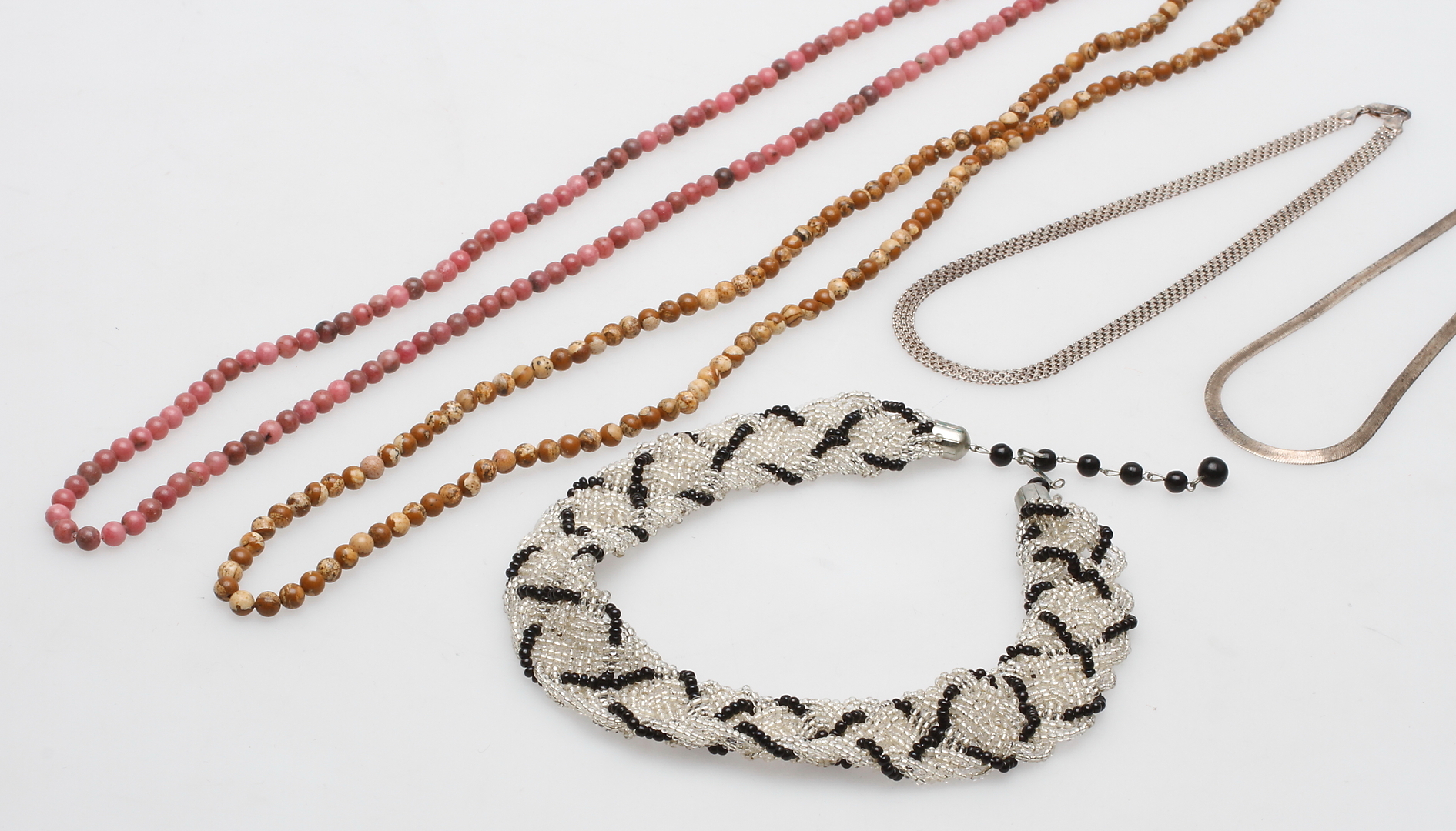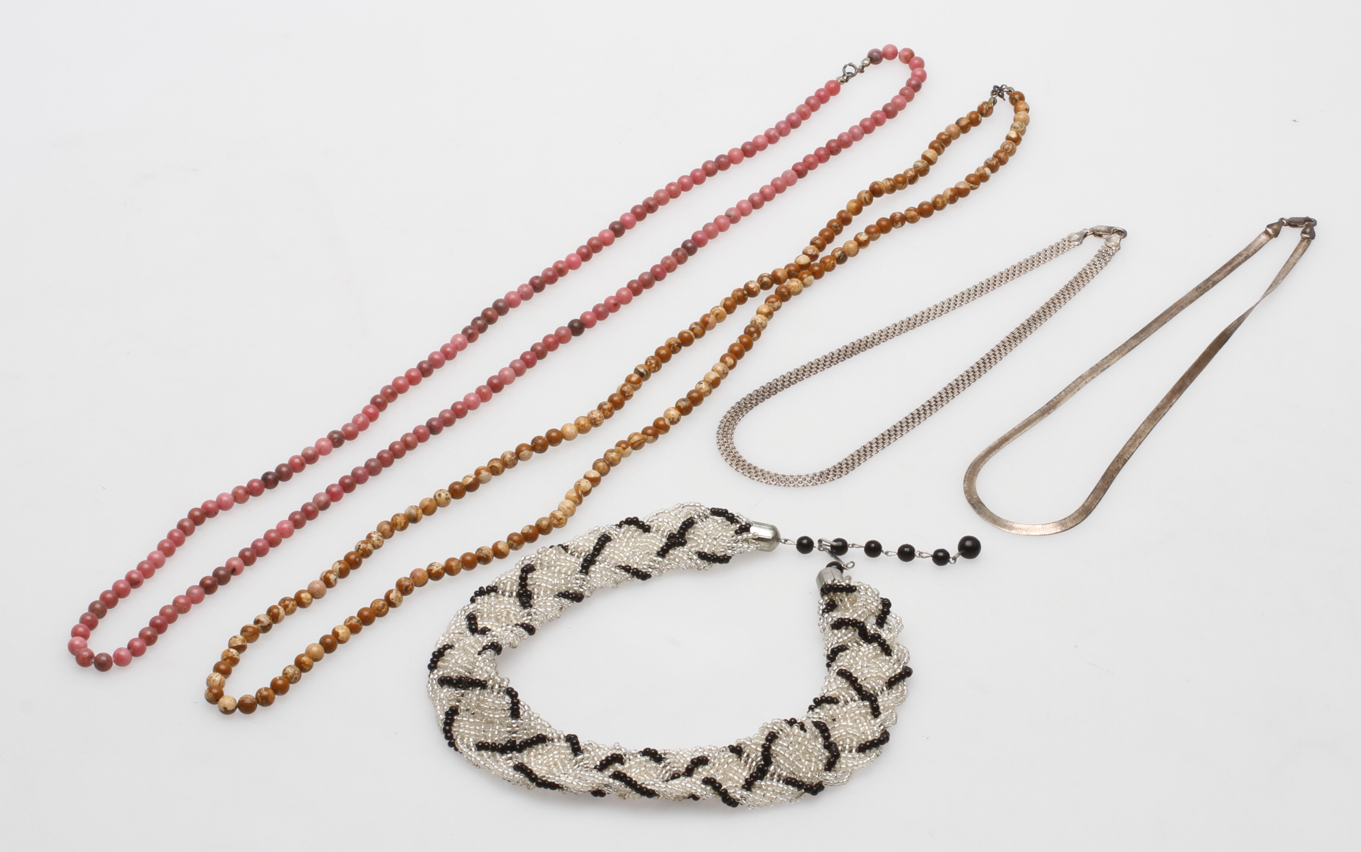 95630. HALSKÆDE, 5 stk, bl.a. sølv.