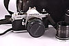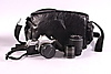 I taske med linse, blitz, instruktionsbog mm.