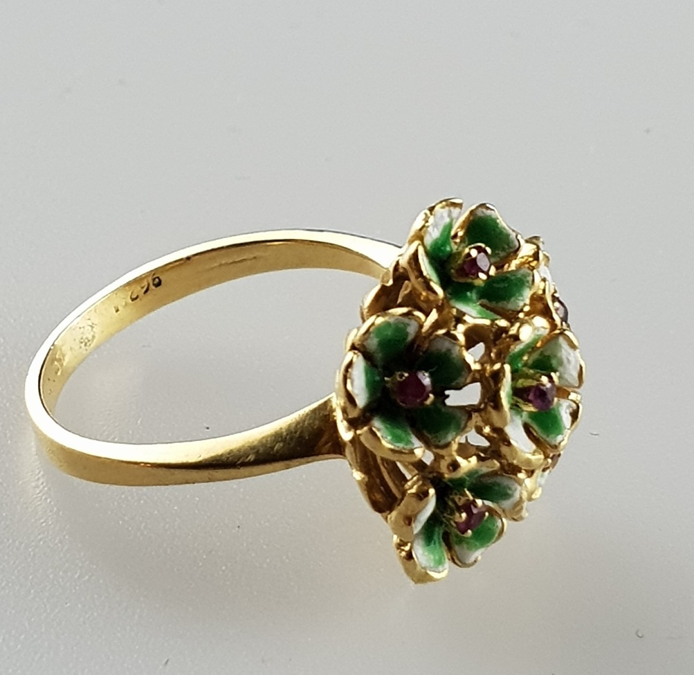 967206. RING - gult guld 750/000, emalje, ca 5g.