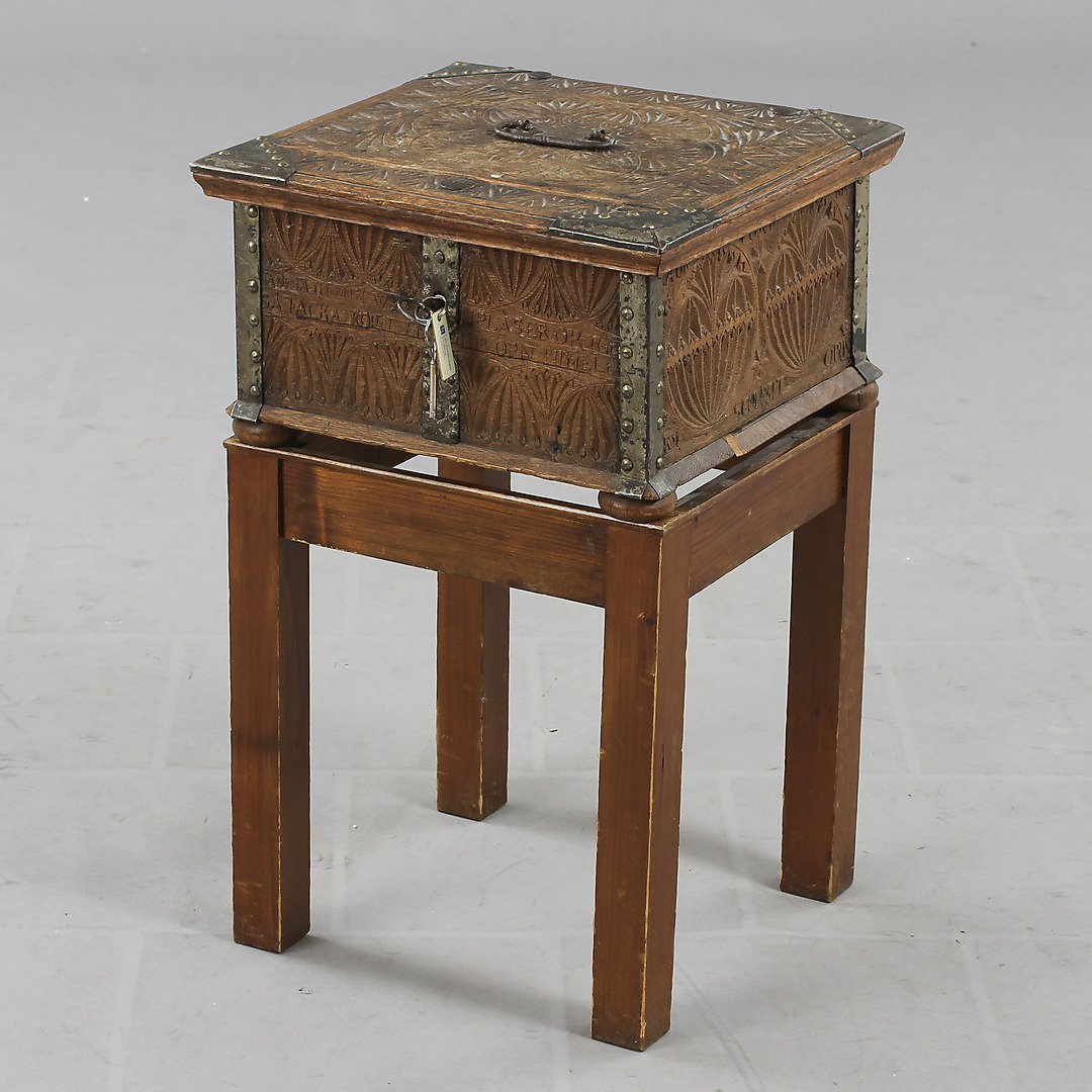 96839. ÆSKE på benstativ, udskåret snit, 1700-tallet.