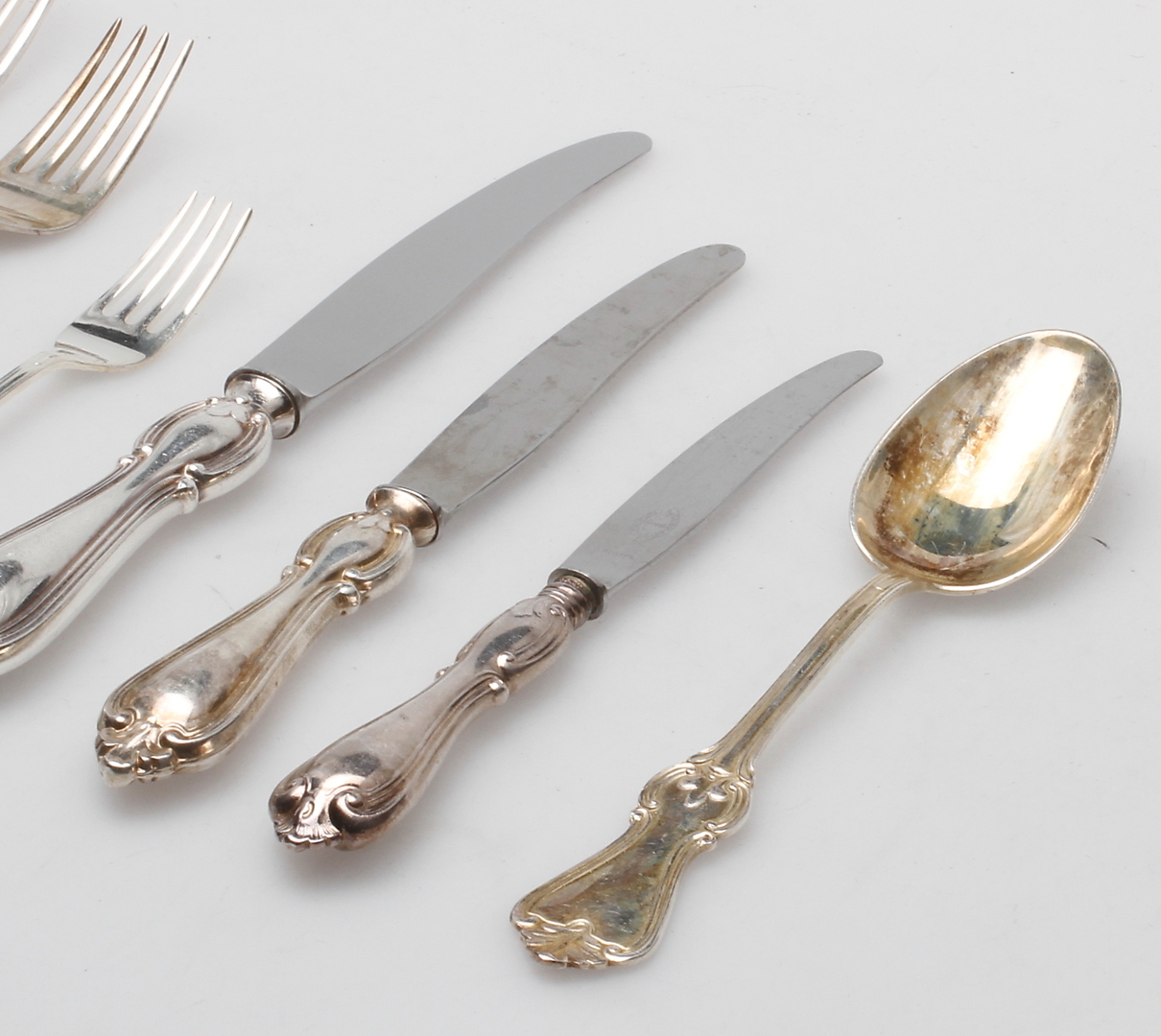 97044. BESTIK, nysølv, 42 dele, "Olga".