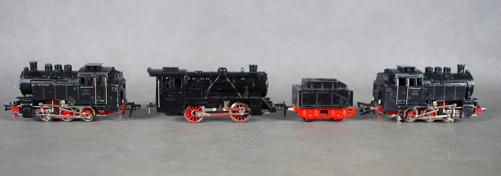 97242. 3 LEGETØJSLÅSE OG TENDS, bl.a. Fleischmann.