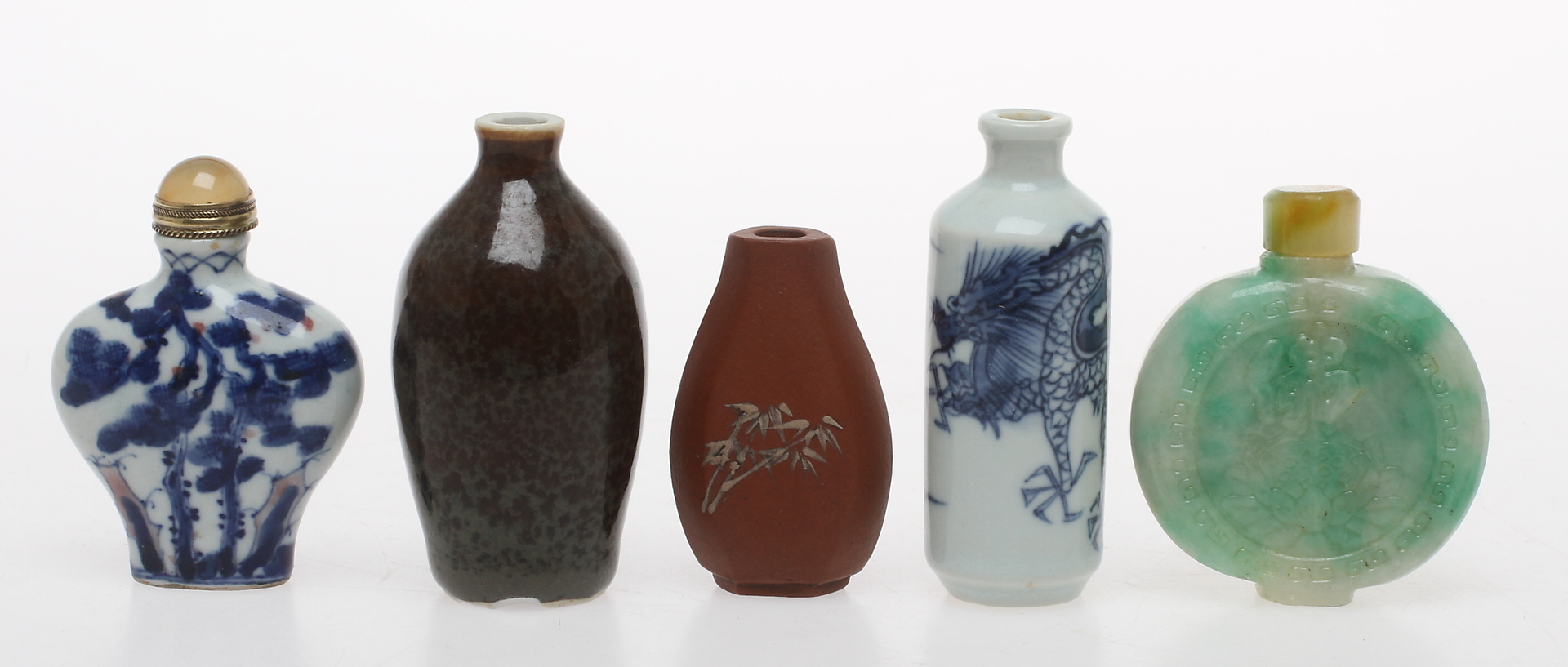 97859. SNUSES FLASKER / FLAGER, 5 stk keramik og sten Kina.