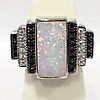 Denne ring er i art deco-stil og er sat med en central rektangulær opalitsten, der måler cirka 14 mm x 7 mm.