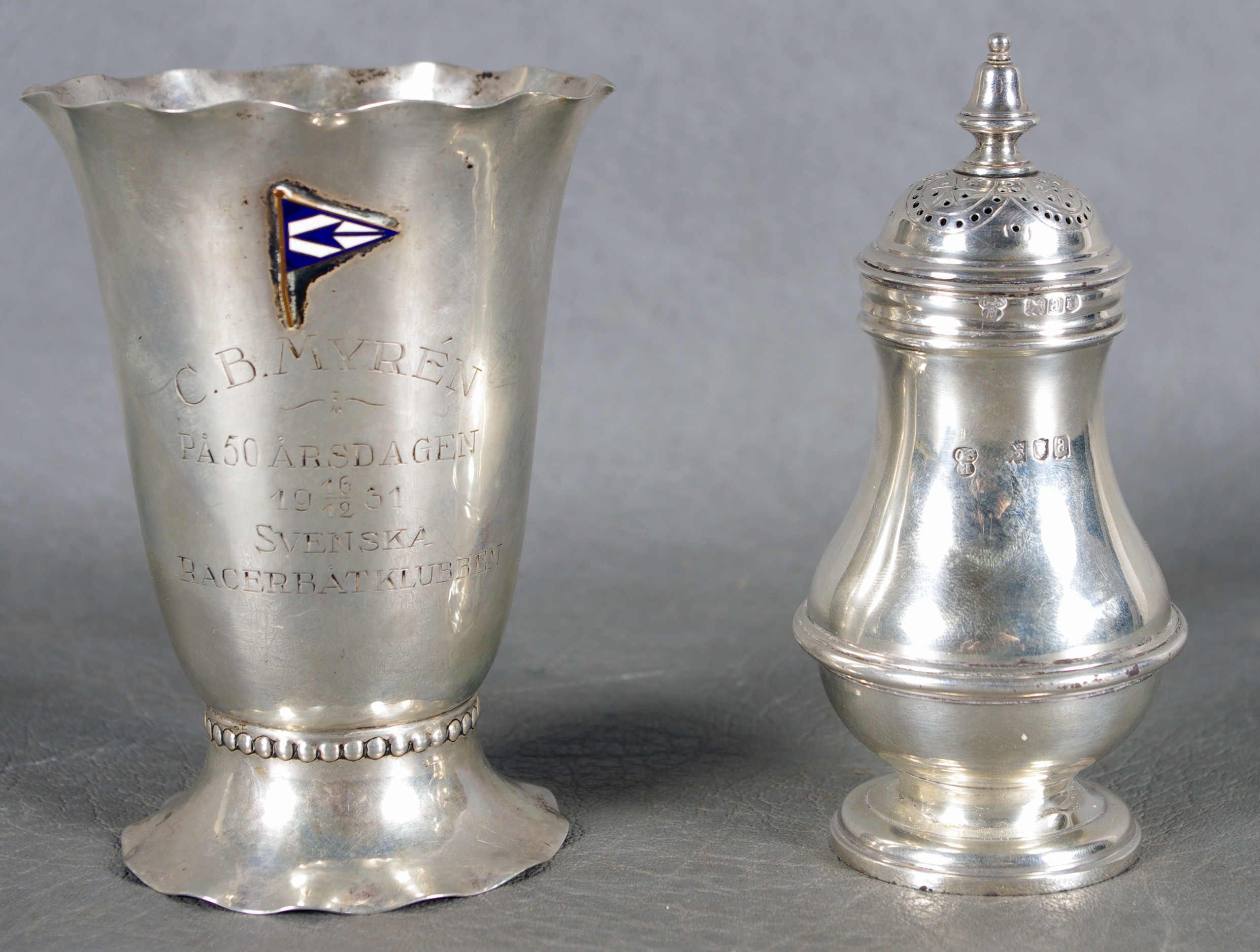 98102. VAS OG SPRØJTE, svensk og engelsk sølv.