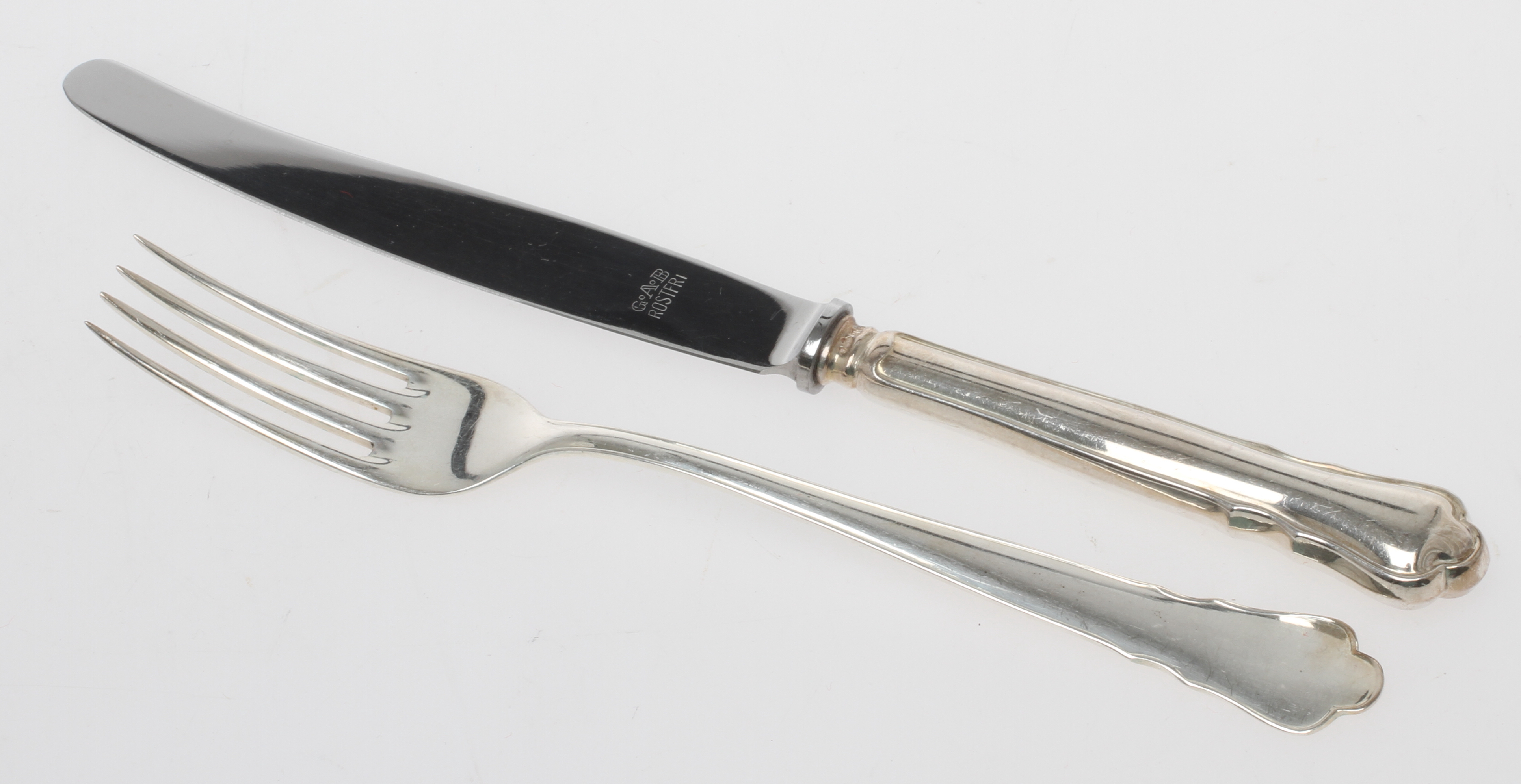98422. BESTIK, ca. 86 stk., sølv, "Chippendale", GAB.